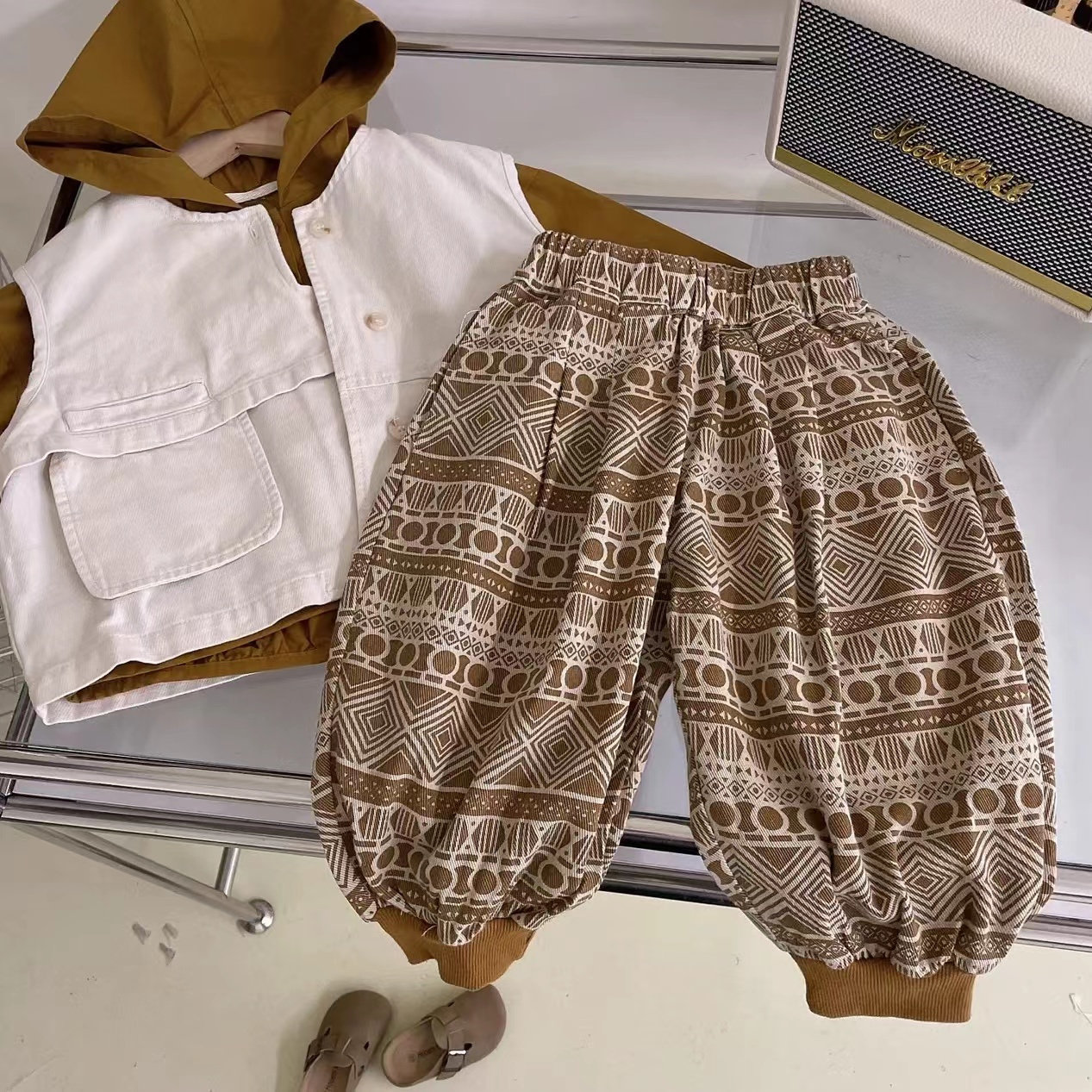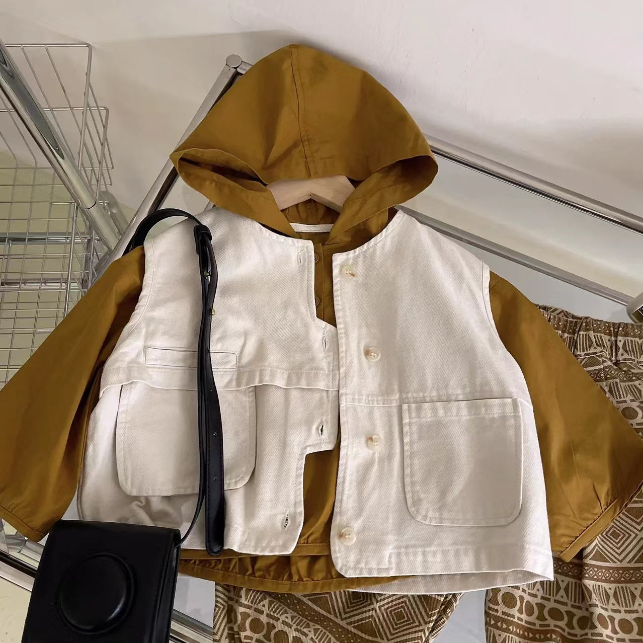 男女童韩版春秋款2026新款工装休闲马甲连帽衬衫宽松中性日系套装