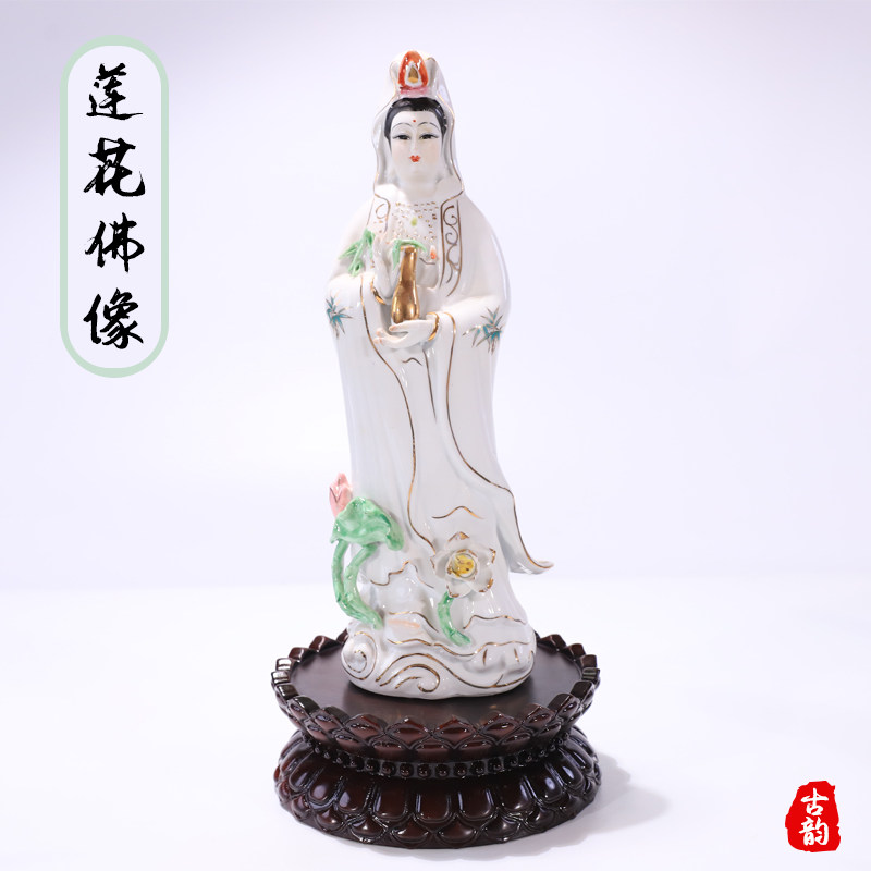 莲花底座圆形实木莲花供台观音盆景佛像财神莲花底座摆件加高托架