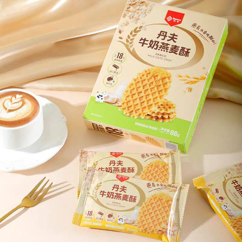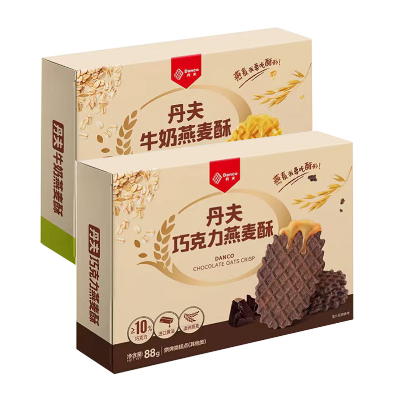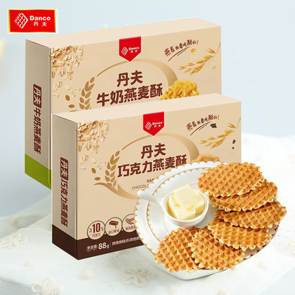 丹夫燕麦酥43g88g巧克力牛奶薄脆华夫饼干盒装西式糕点休闲零食