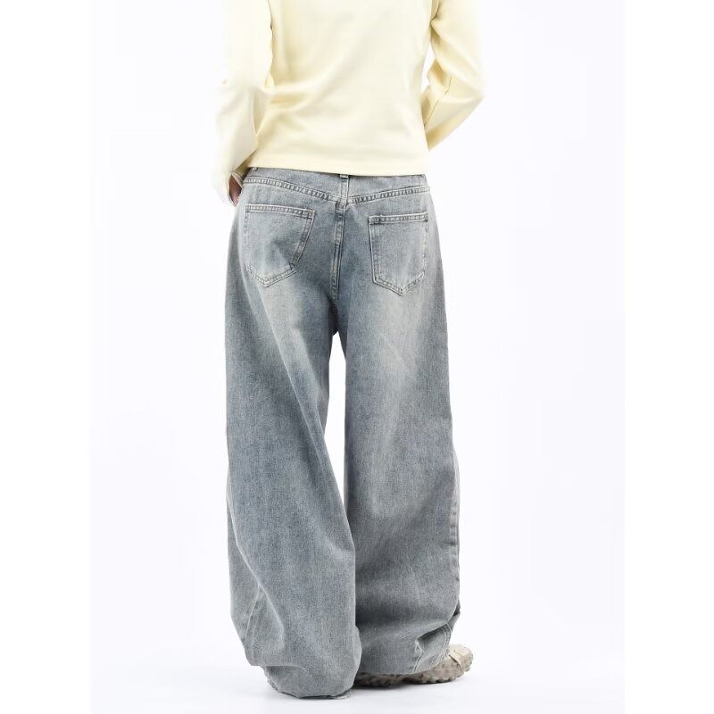 韩版复古直筒牛仔裤男女新款破洞裤子刺绣设计阔腿长裤
