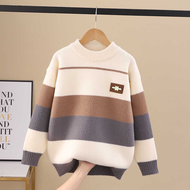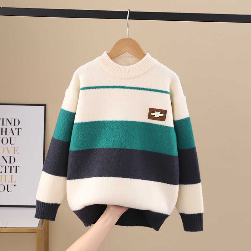 男童毛衣秋冬2025新款冬装百搭中大童男孩加厚加绒针织衫儿童线衣