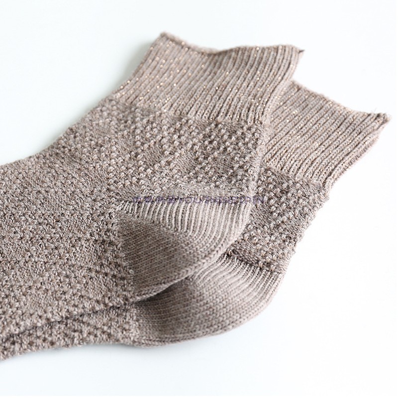 1条装春秋新款日系高罗口银葱粗线菱形格棉质女短袜 1813
