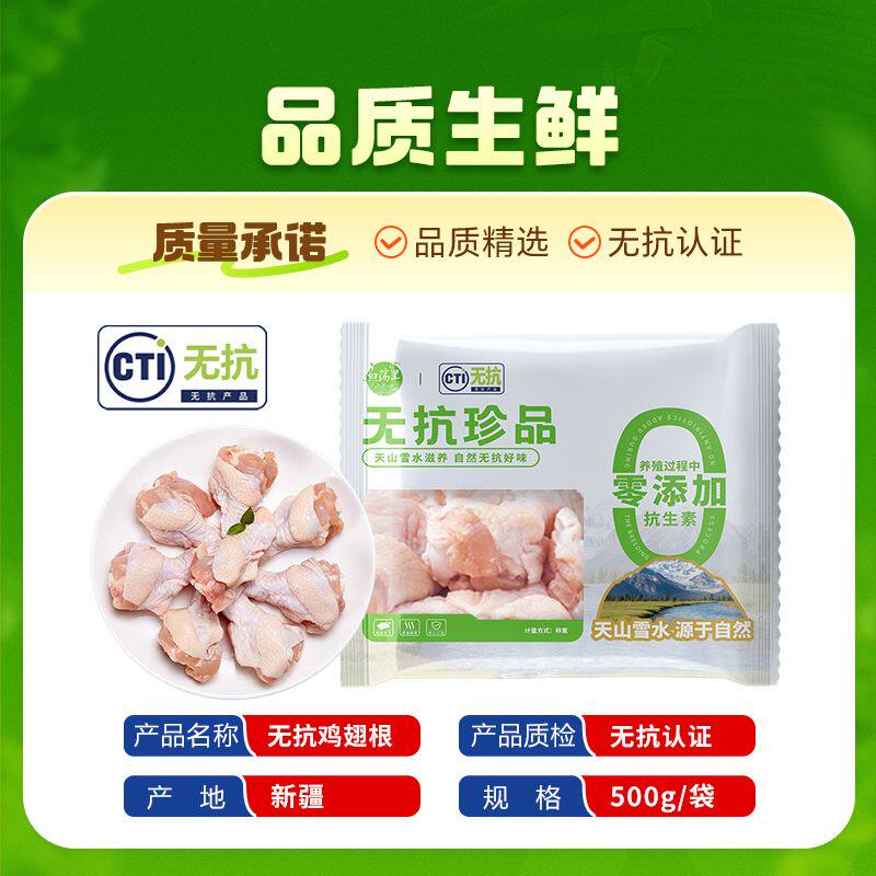 白荡里 无抗鸡翅根4斤新鲜小鸡腿可乐鸡翅烧烤鸡肉食材500g/袋