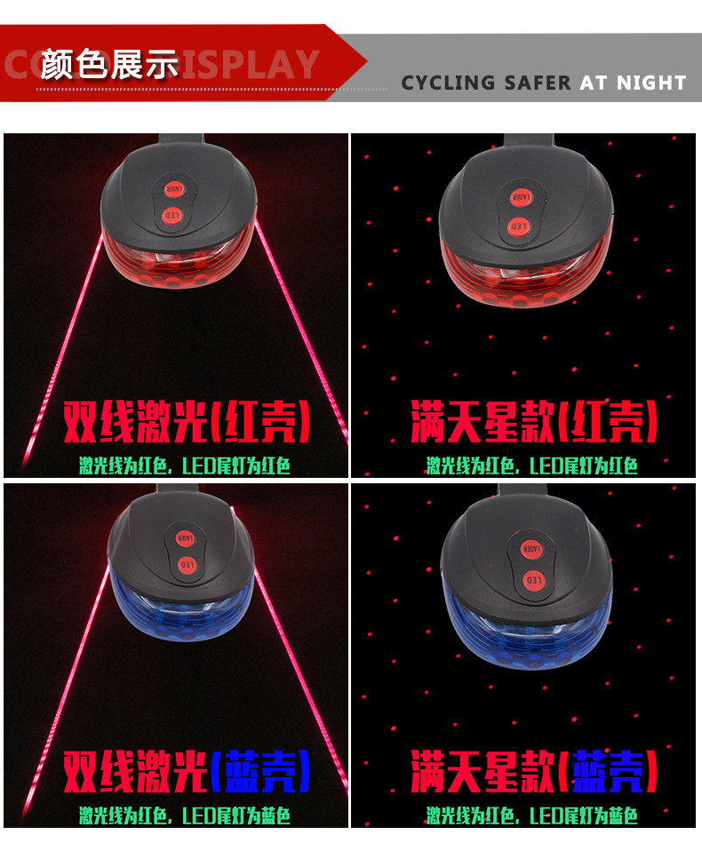 山地自行车尾灯满天星平行线激光灯7彩灯死飞安全警示灯骑行装备