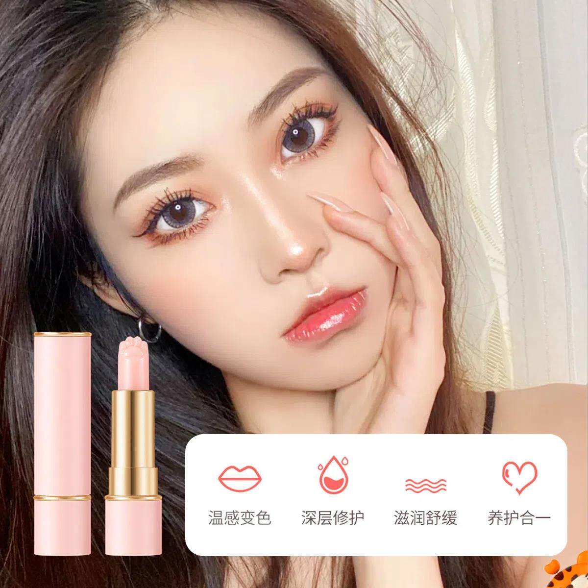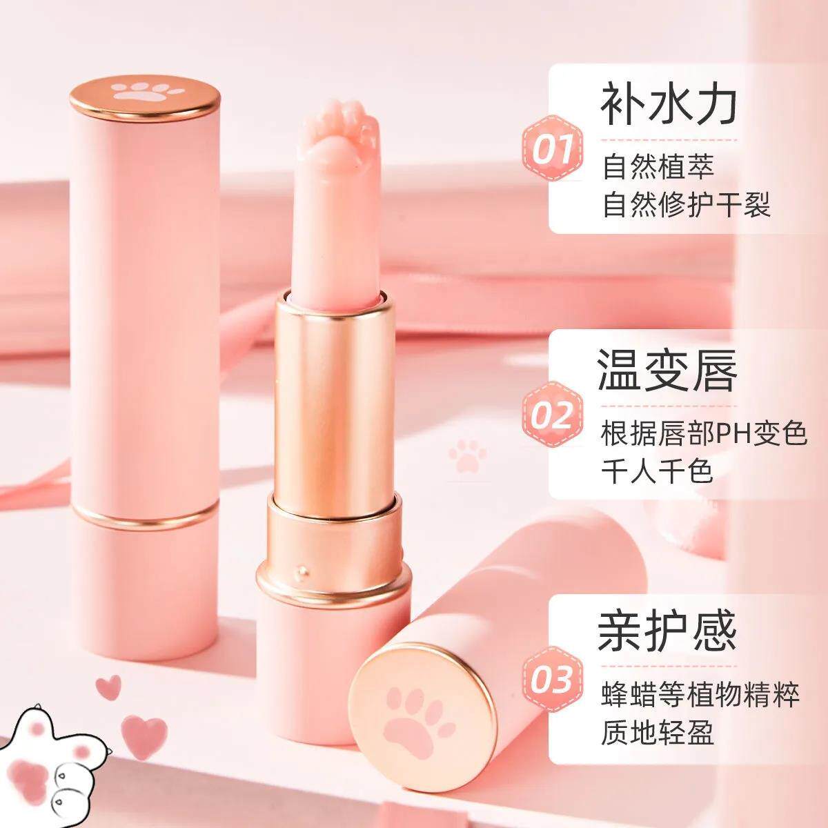 正品】千人千色变色唇膏保湿滋润裸色口红粉色不掉色温感猫爪润唇