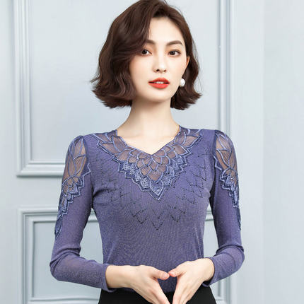 特价蕾丝衫女士打底衫女新款春秋装长袖修身亮丝网纱薄款内搭上衣