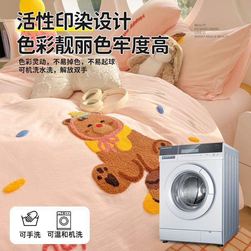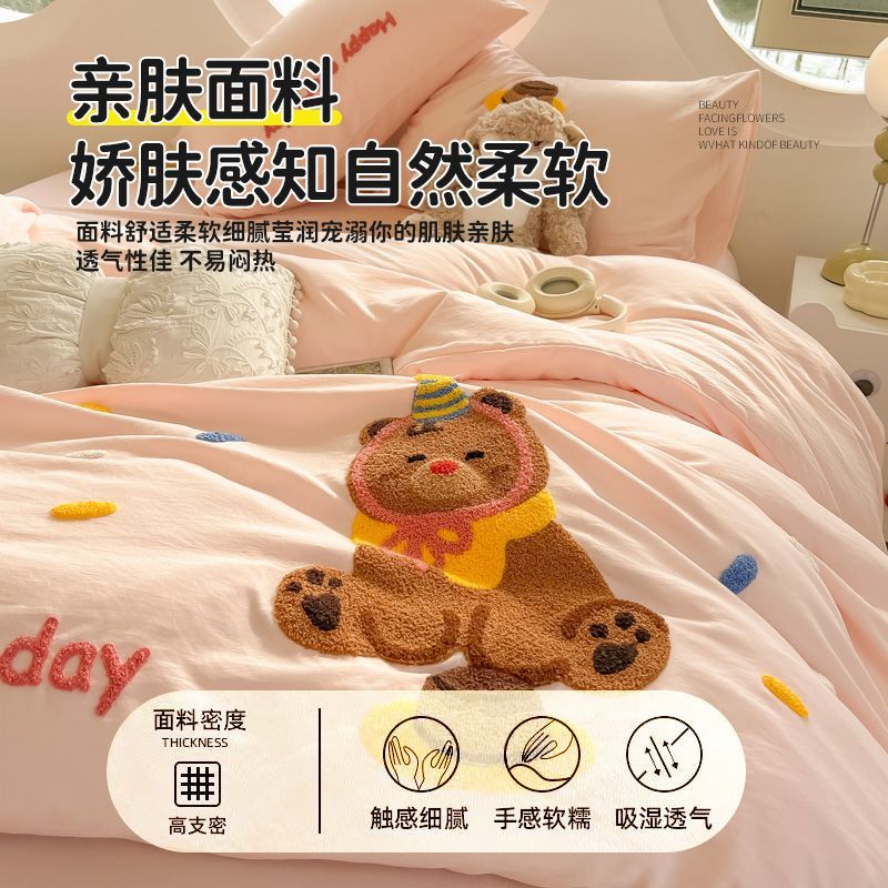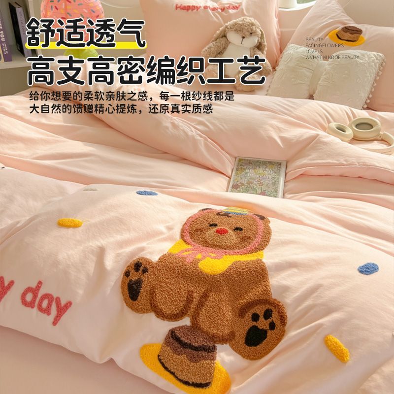ABS毛巾绣床单四件套水洗棉床品四季通用被套学生宿舍床上三件套
