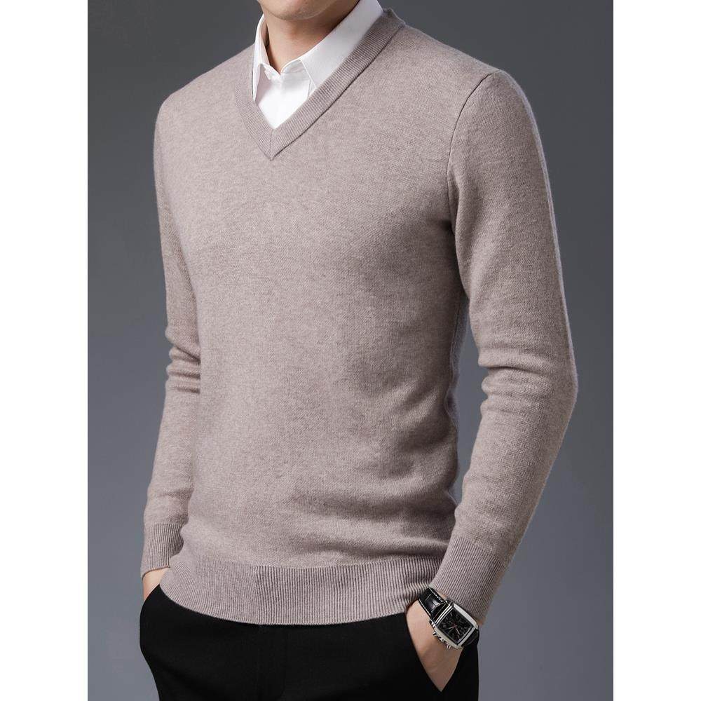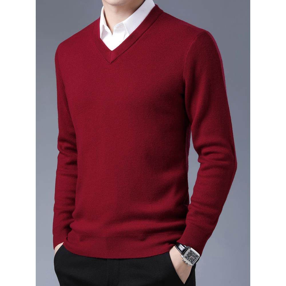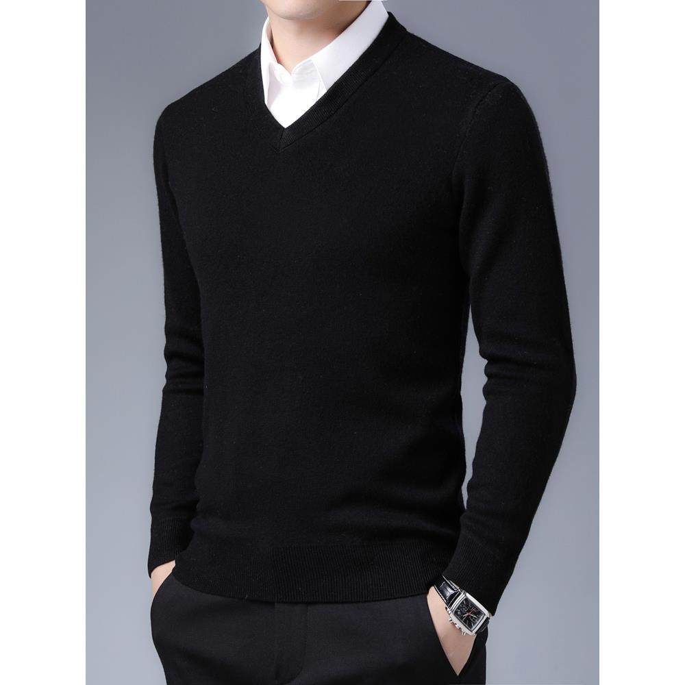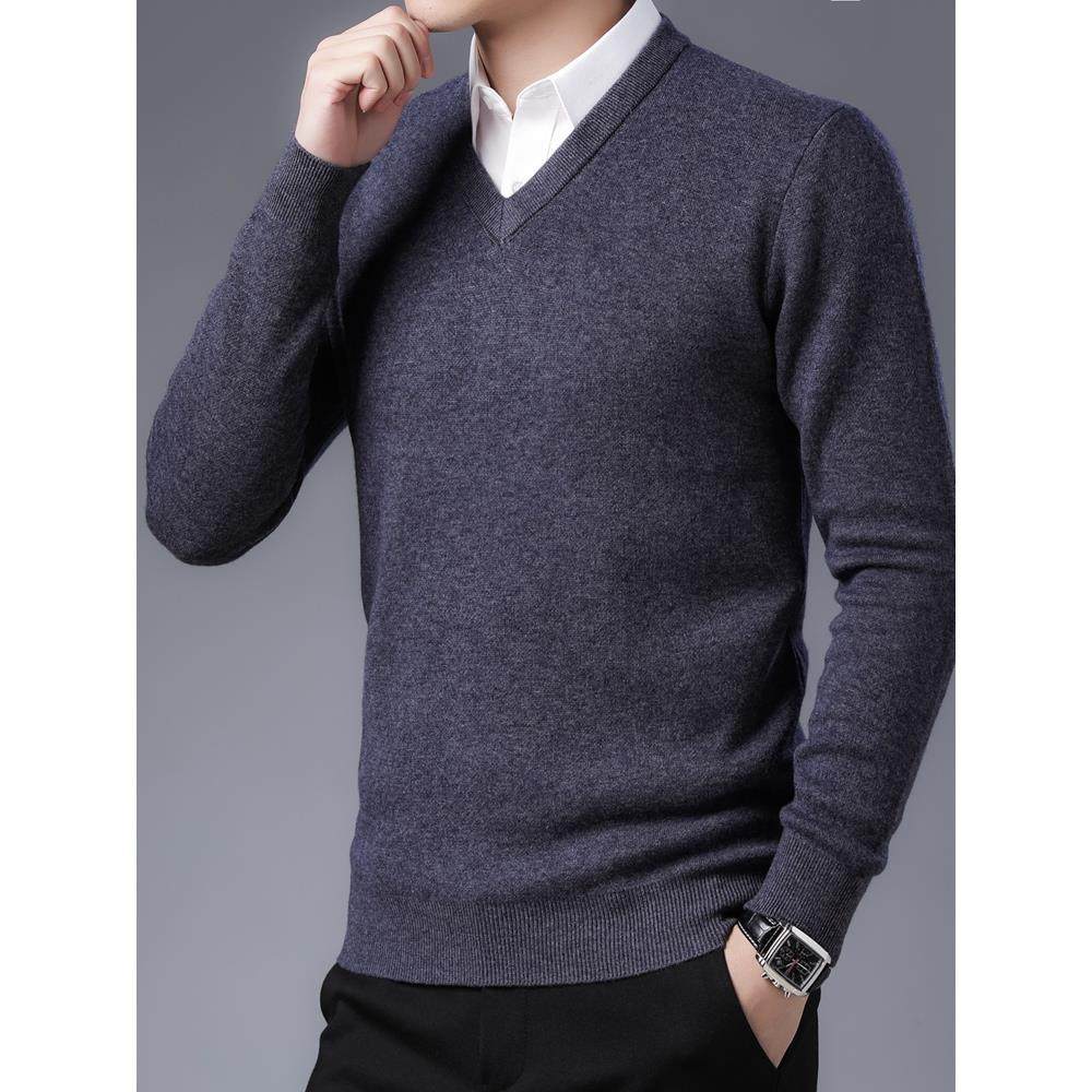 鄂尔多斯市产商务上班鸡心领羊毛衫男V领纯色羊绒毛衫圆领毛衣男