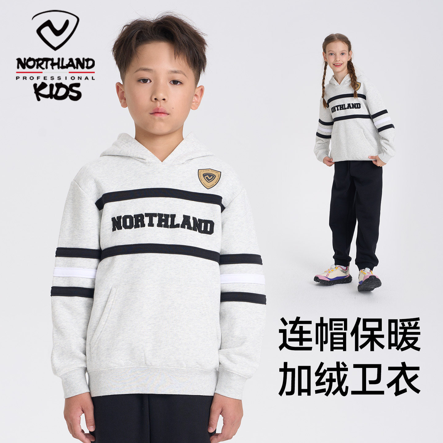 NORTHLAND卫衣男童连帽加绒长袖秋冬款中大童休闲运动上衣打底衫
