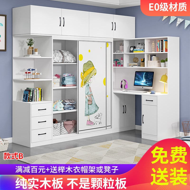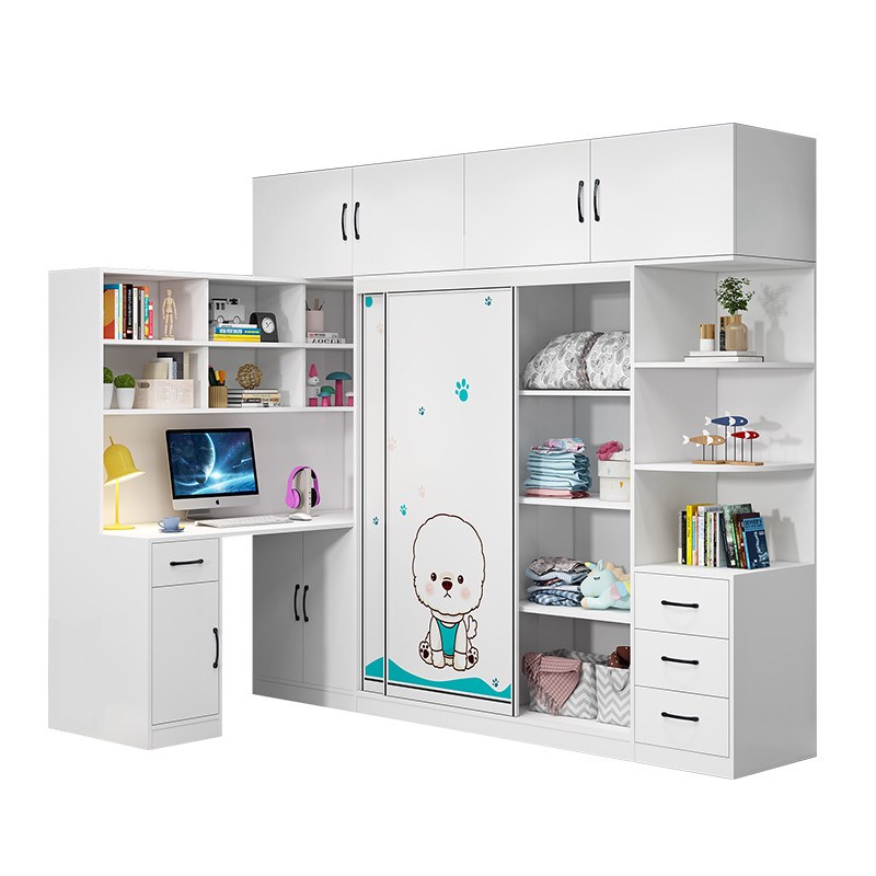 儿童房小卧室衣柜带学习桌书桌书架组合新款推拉门铁皮转角梳妆台