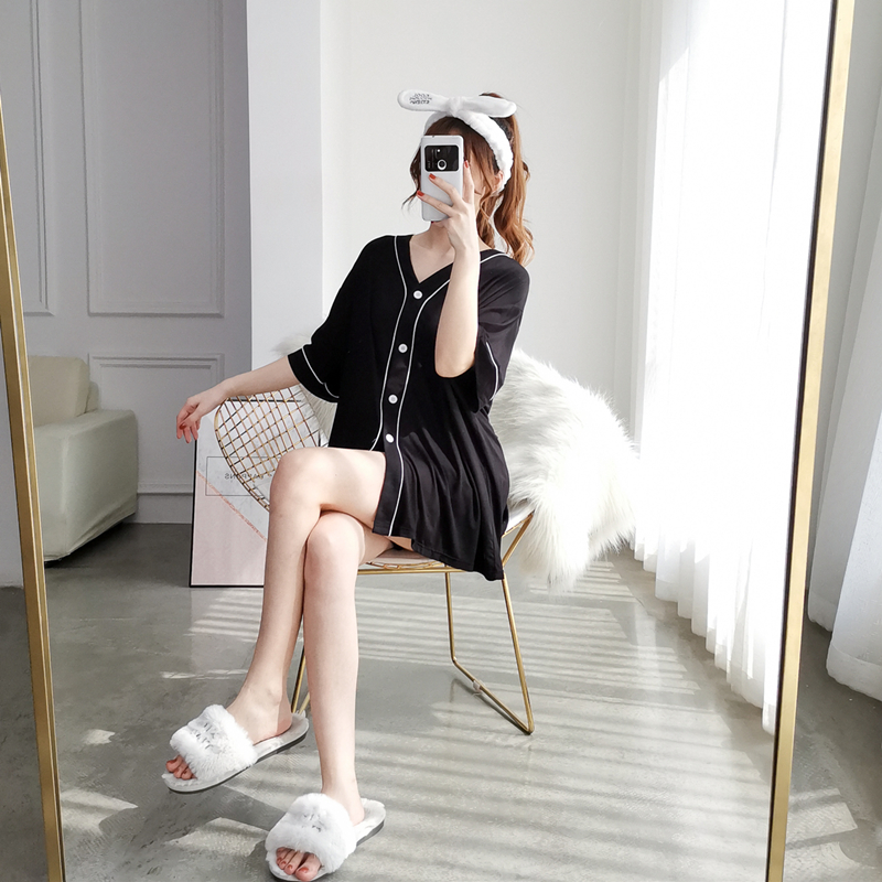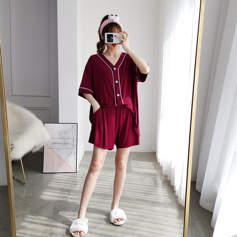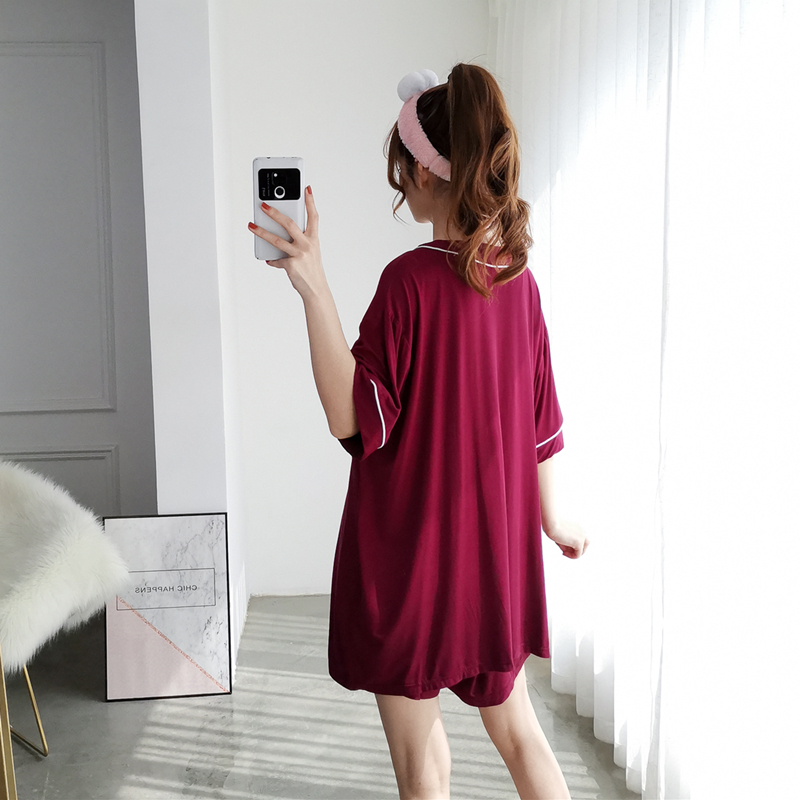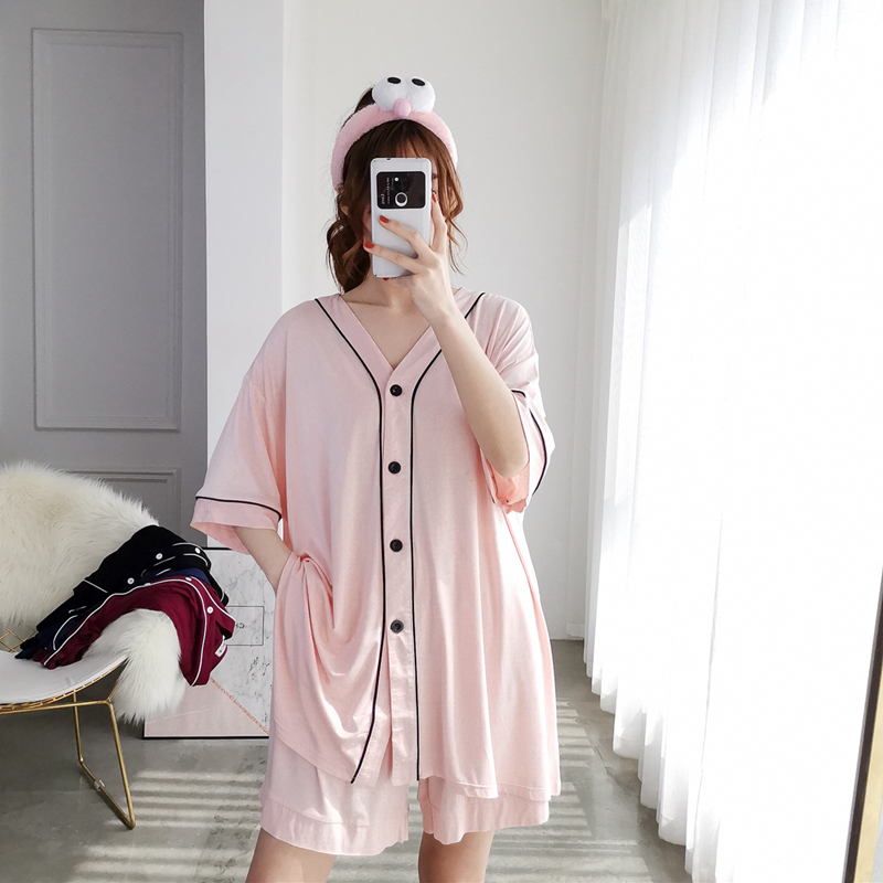 莫代尔睡衣女夏季开衫简约短袖两件套加大码孕妇胖mm200斤家居服