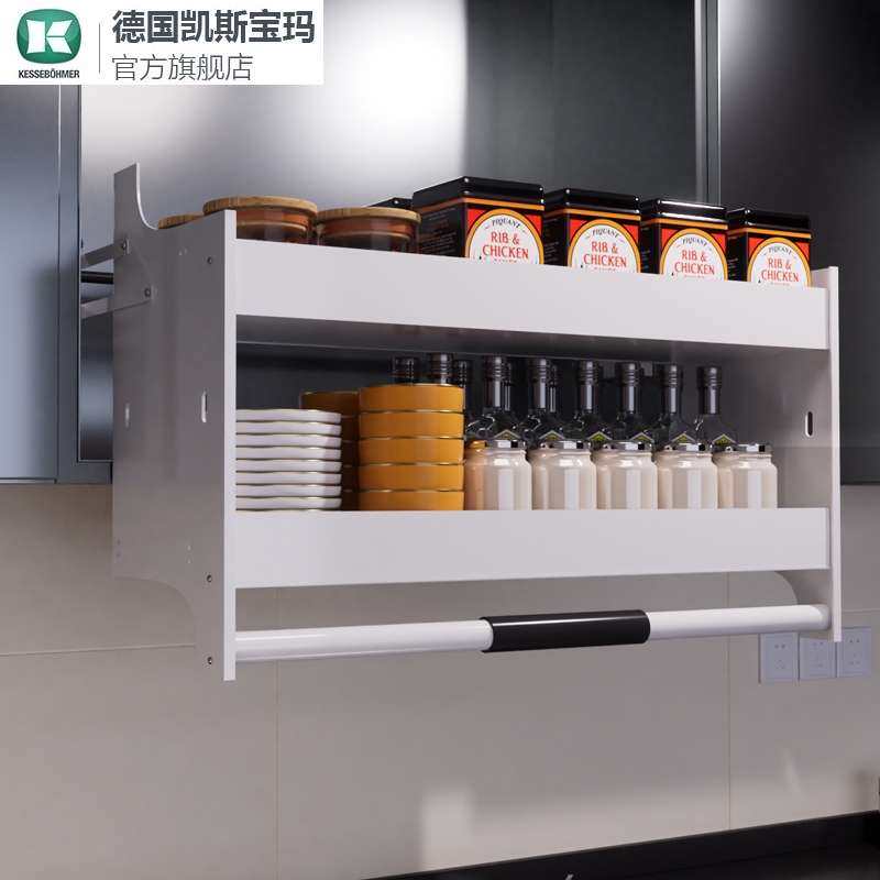 凯斯宝玛厨房吊柜升降拉篮3v04不锈钢碗碟收纳下拉式升降调味篮伸