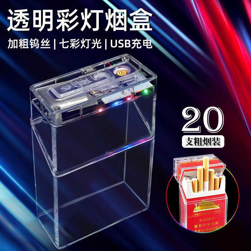 十二生肖透明烟盒打火机一体可视闪灯翻盖抗压防潮保护盒整包通用