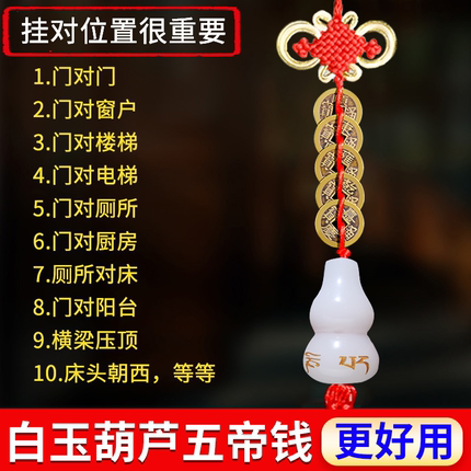 真白玉葫芦五帝钱挂件铜门对门真品厨房在西北大明火烧天门避火解
