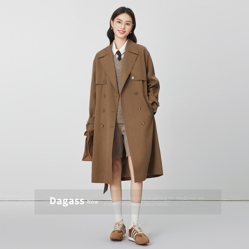 达佳诗2025早秋新款风衣女气质韩版小个子上衣白色休闲中长款外套