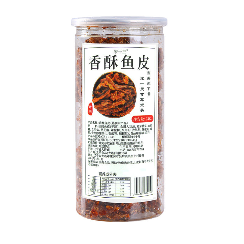 宋十三罐装香酥鱼皮248g即食烤鳕鱼皮炸鱼皮办公室休闲解馋小零食