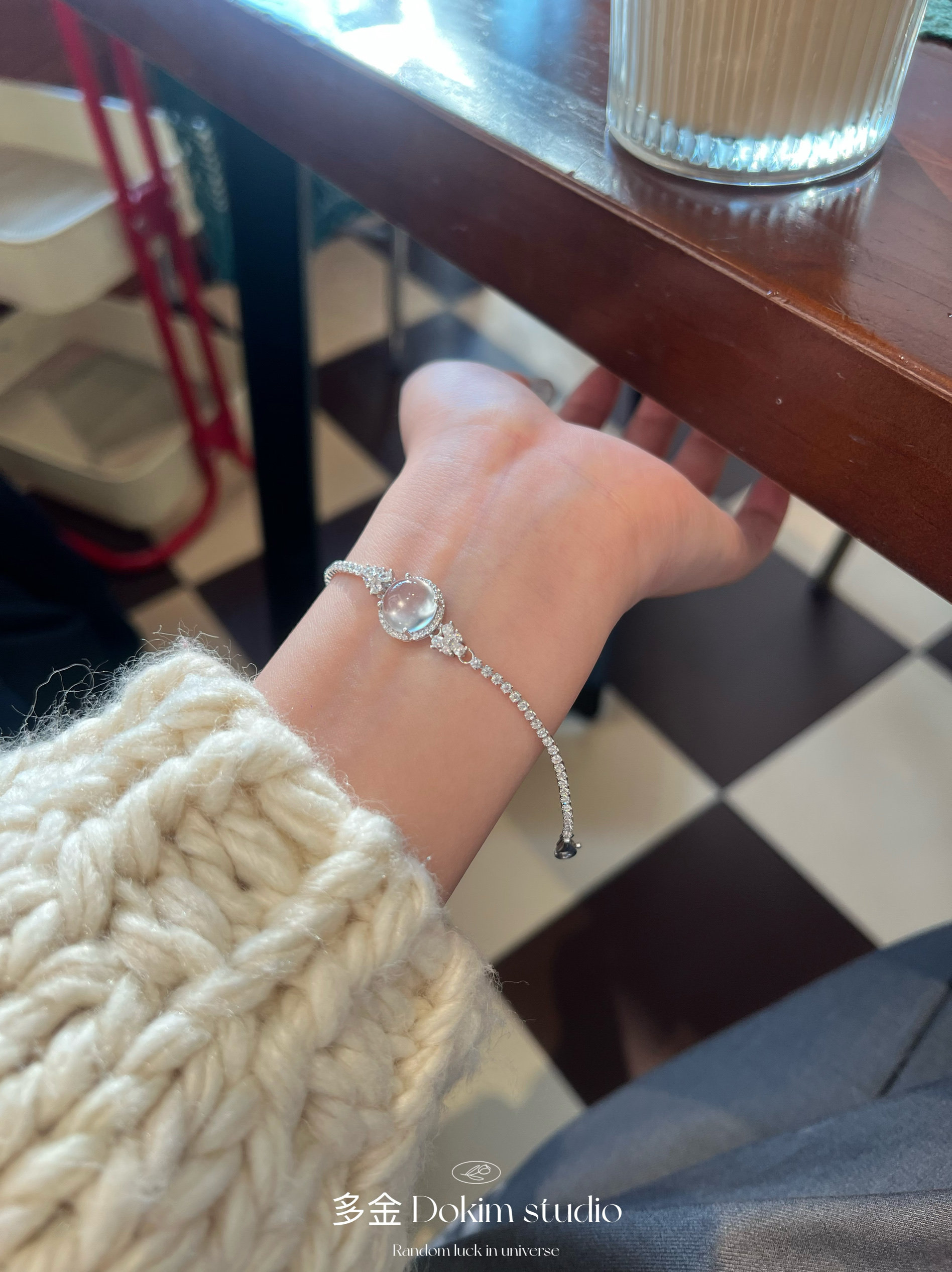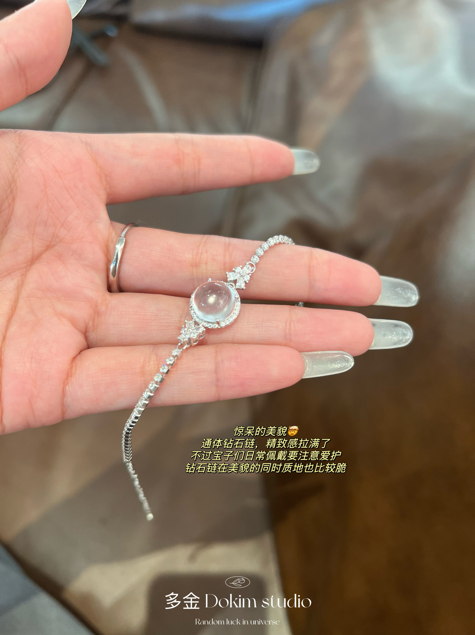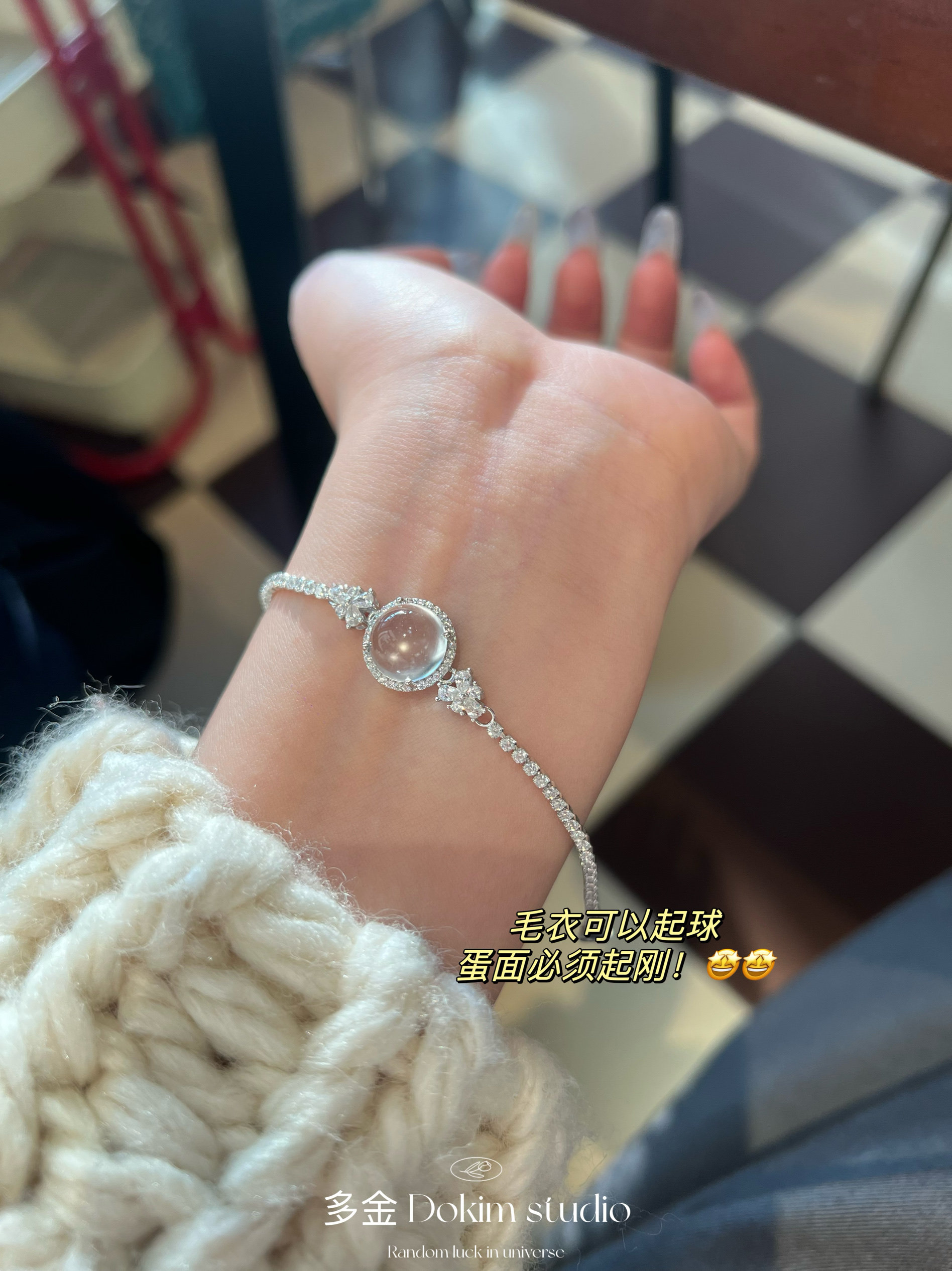 叠戴的神超美S925纯银天然水沫玉钻石手链满钻超闪简约高级感首饰