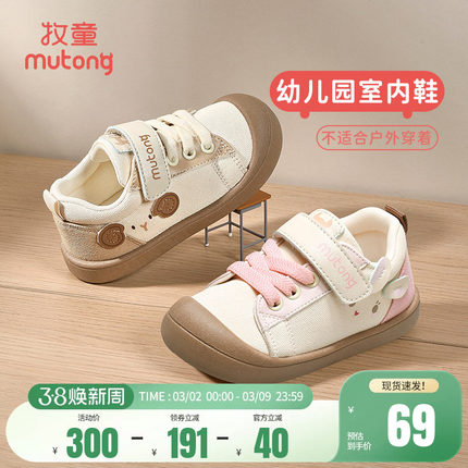 牧童儿童帆布鞋春秋卡通女孩室内鞋软底防撞男童幼儿园鞋休闲鞋子