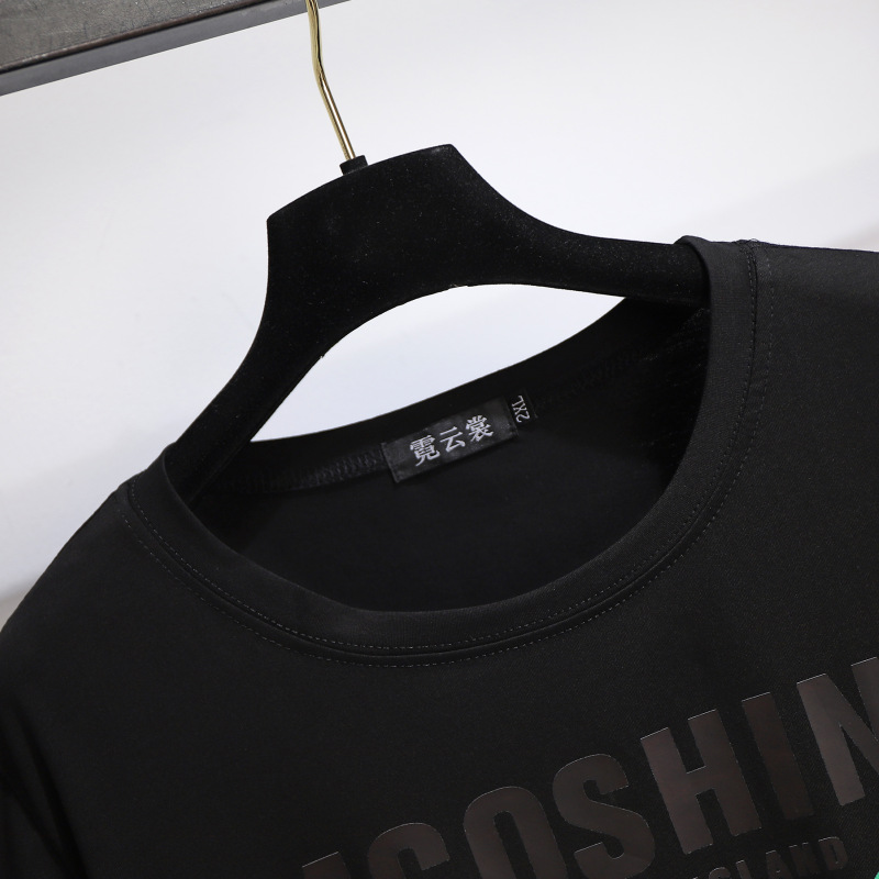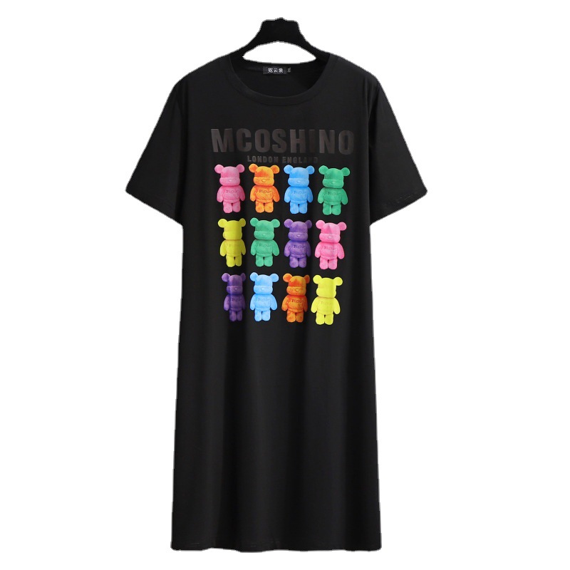300-350斤胸围170夏季中长款短袖T恤裙胖MM宽松显瘦黑色连衣裙子