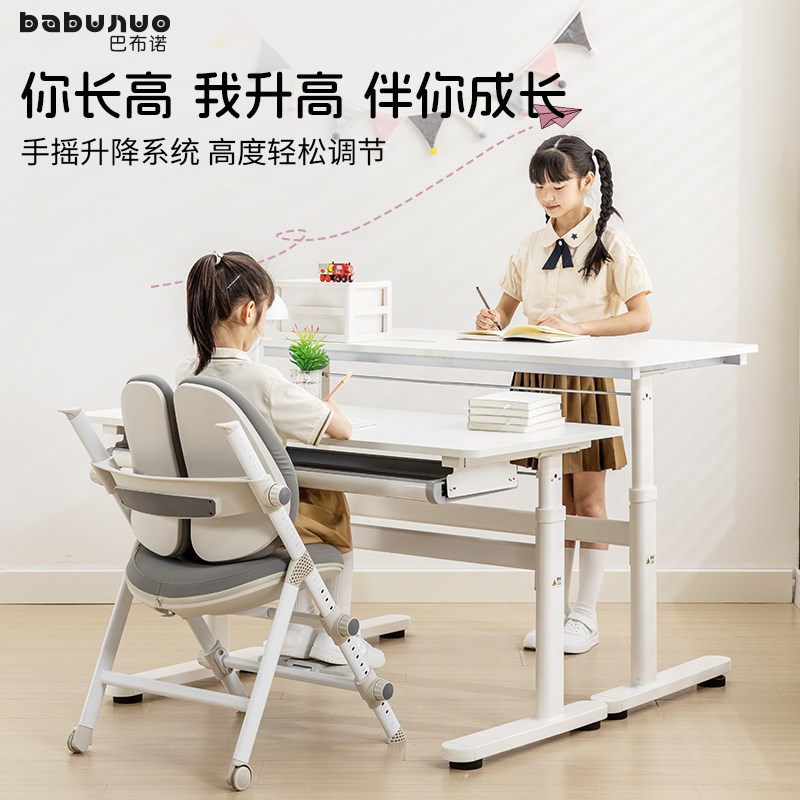 儿童书桌学习桌小学生家用写字桌可升G降课桌椅套装作业专用实木