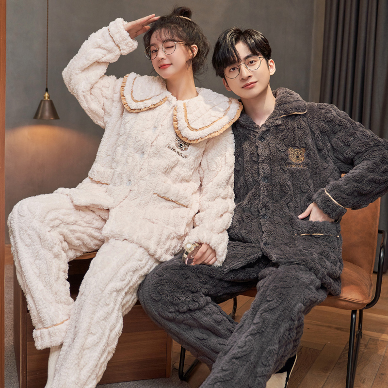 情侣睡衣秋冬珊瑚绒男女士加厚加绒法兰绒绒可爱男士家居服套装