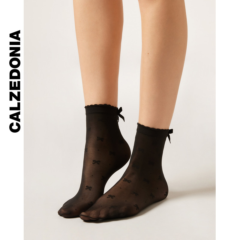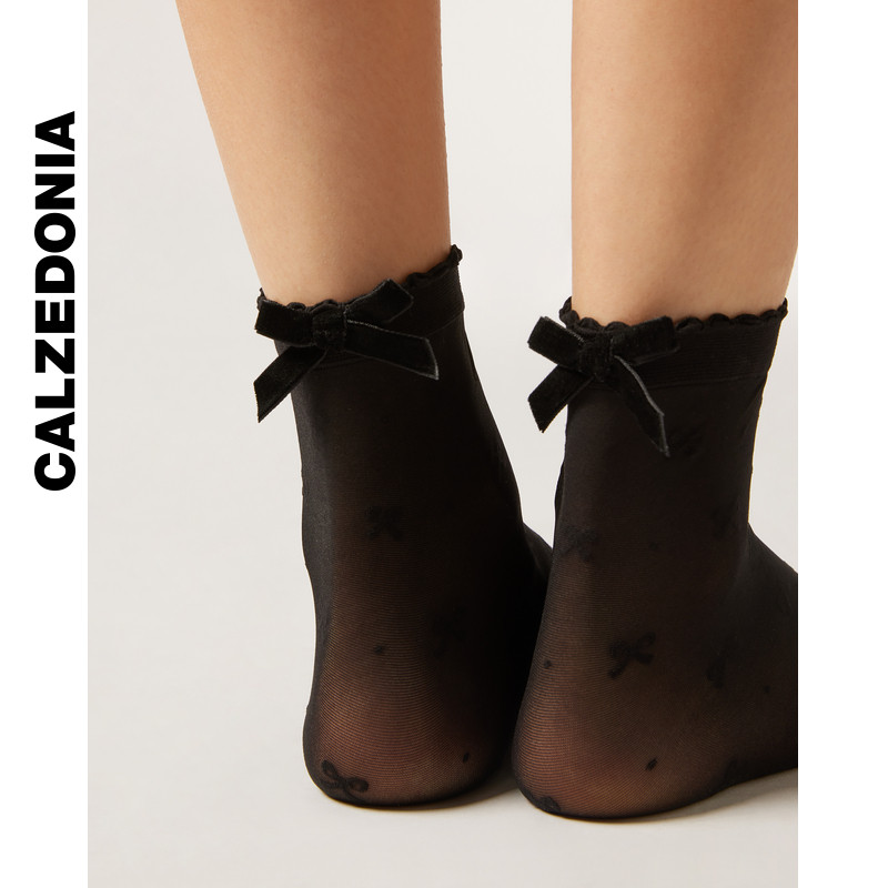 CALZEDONIA卡泽意袜女士时尚蝴蝶结装饰短袜短袜中筒袜DCZ072