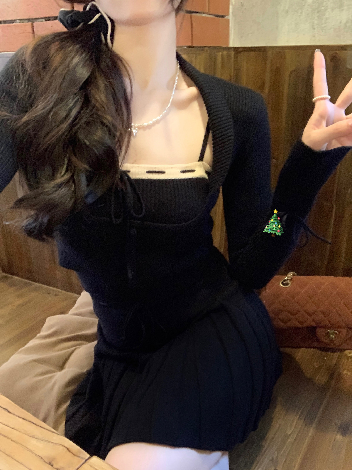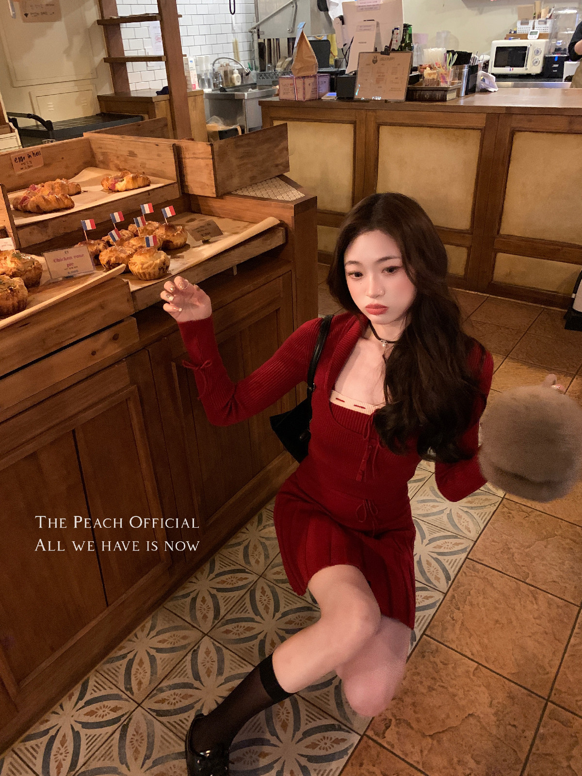 thepeachofficial【日剧甜心】红色内搭针织套装裙温柔毛衣三件套