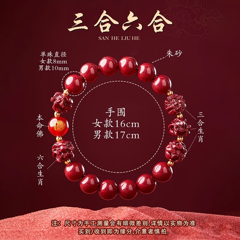 普陀山2025蛇年本命年正品朱砂手串三合六合本命佛手链属虎猴猪龙