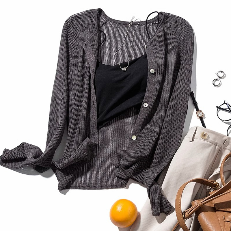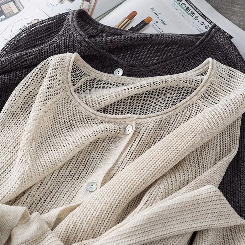 天丝亚麻镂空针织空调防晒衫