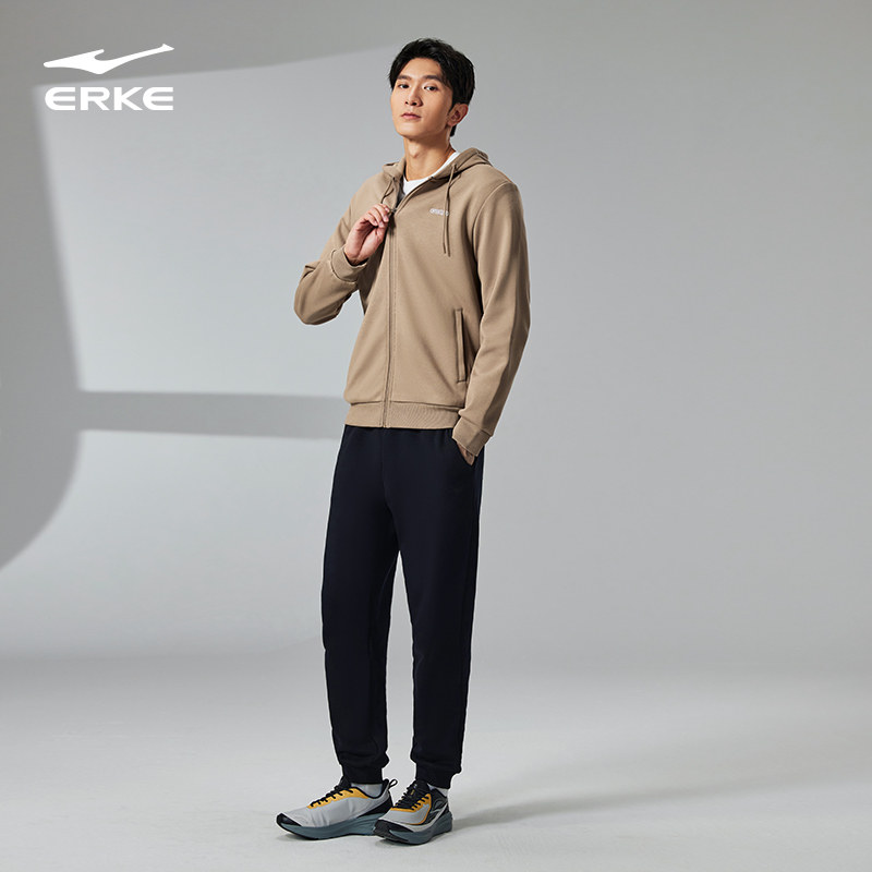 鸿星尔克运动外套2025春秋新款男士休闲服连帽开衫卫衣针织上衣男
