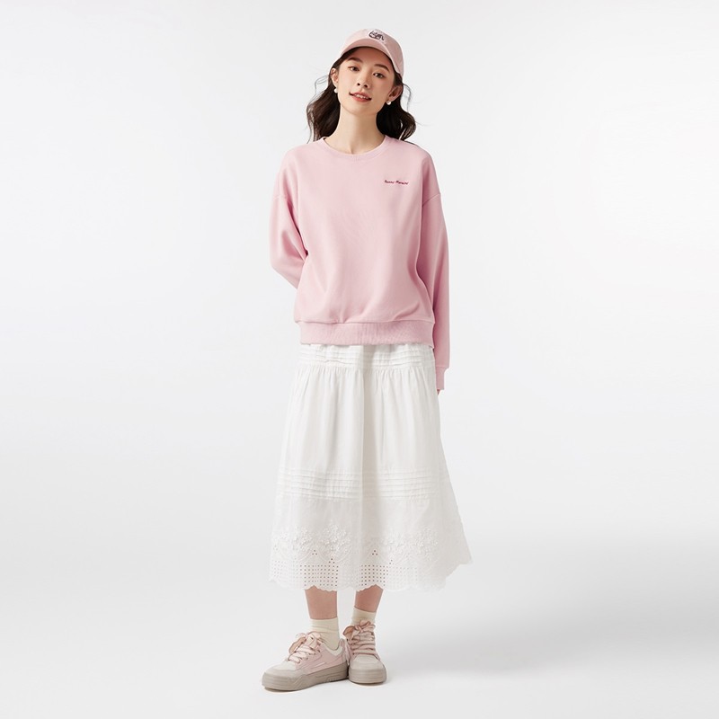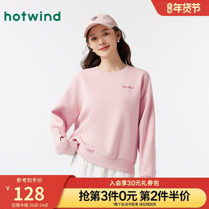 热风2025年春季新款女士圆领休闲卫衣宽松时尚套头长袖运动上衣女
