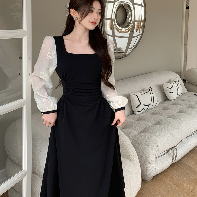 大码女装法式赫本风高级感黑色长裙早秋胖妹妹气质长袖显瘦连衣裙