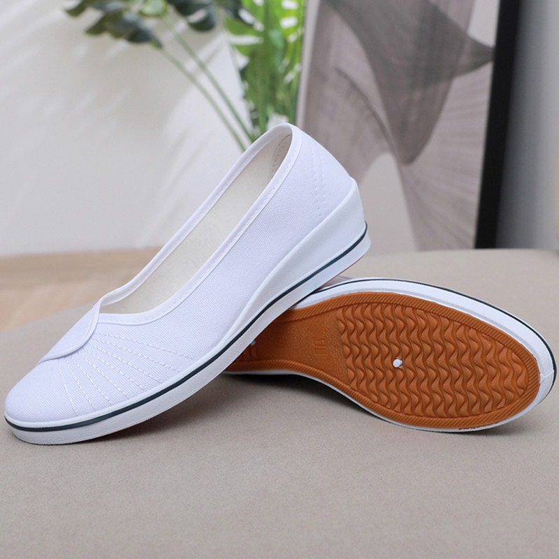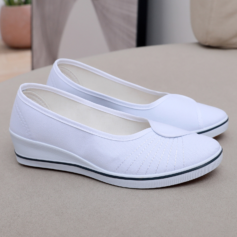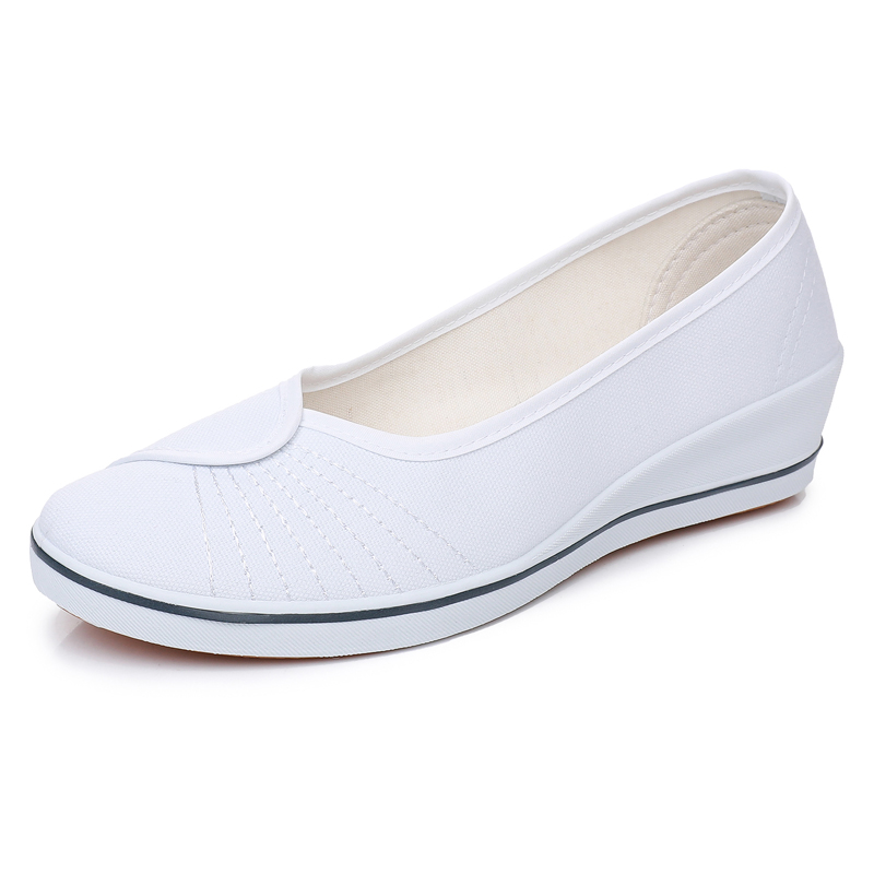 白色坡跟护士鞋美容医院工作鞋白鞋软底防滑帆布鞋酒店黑色礼仪鞋