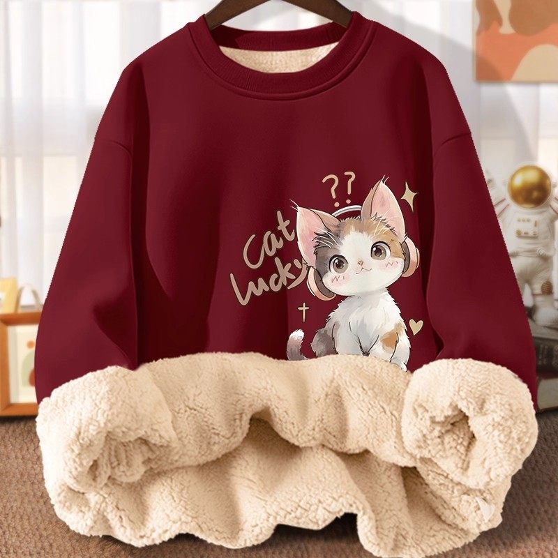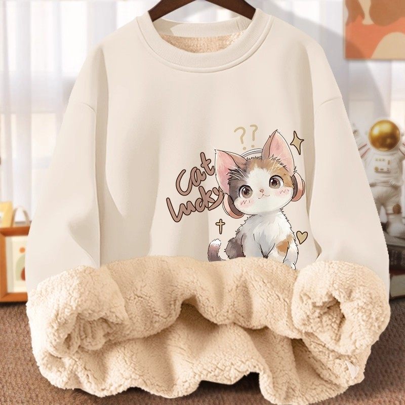 2025新款冬季圆领卫衣女羊羔绒加绒加厚套头上衣美式chic长袖内搭