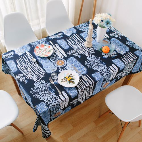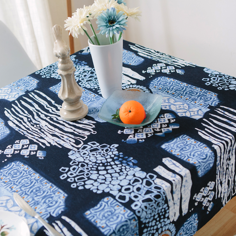 新中式蓝印花棉麻桌布复古民族风青花餐桌布茶几长方形台布盖布艺