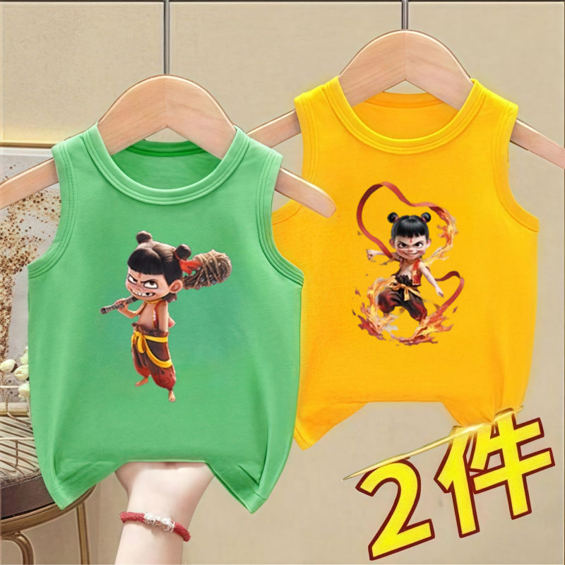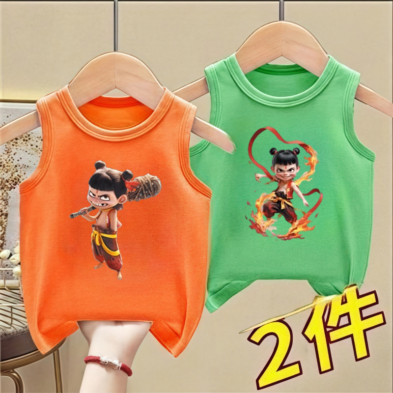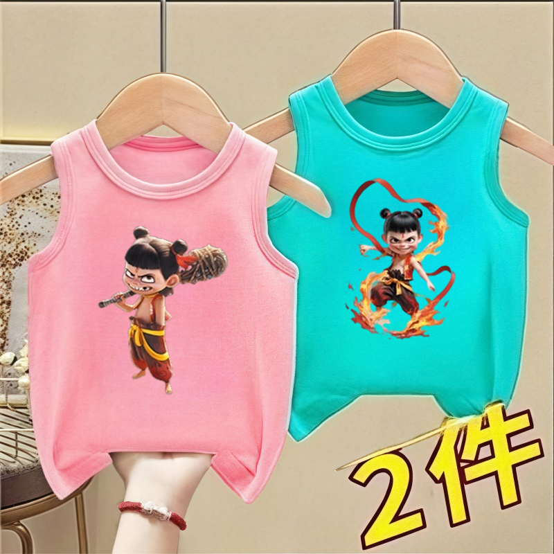 2025国风潮哪吒儿童夏季薄款背心新款纯棉男童女童无袖背心上衣T
