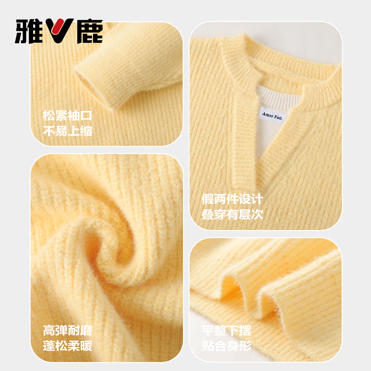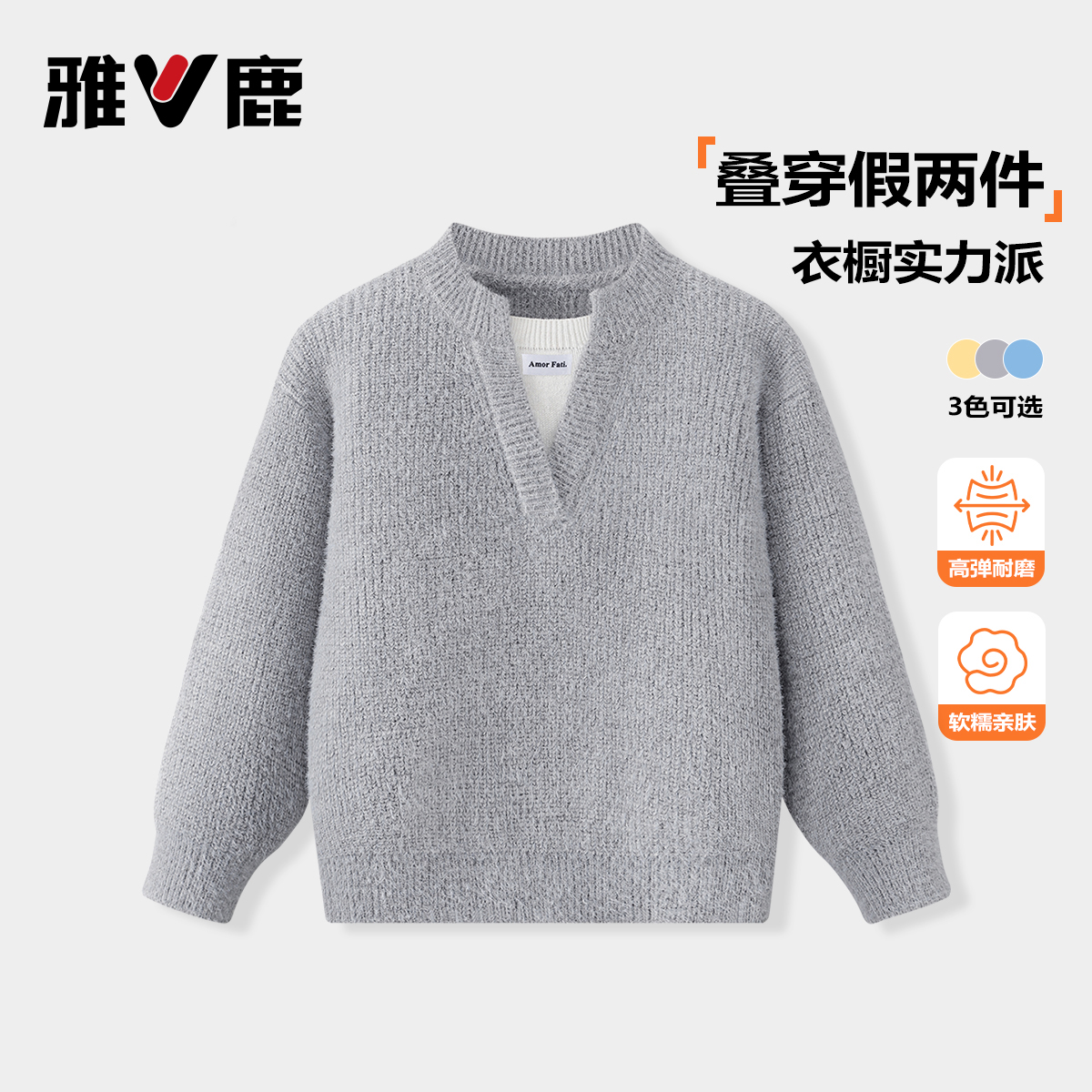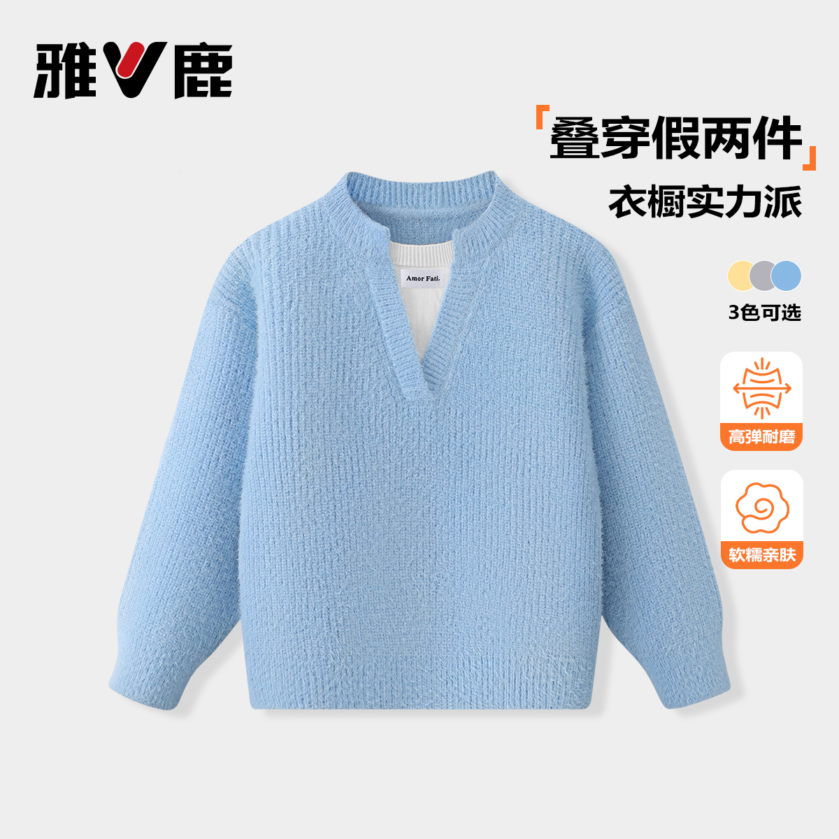 雅鹿儿童毛衣2025新款男女童秋季假两件毛衣针织衫中大童休闲上衣