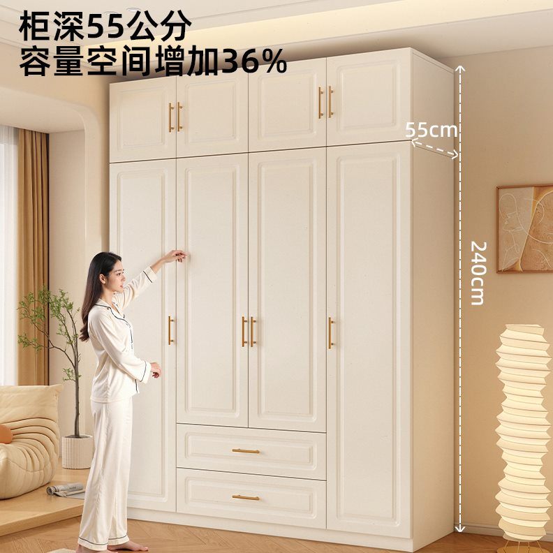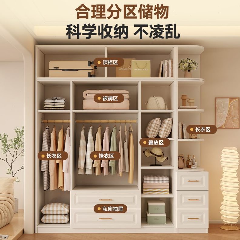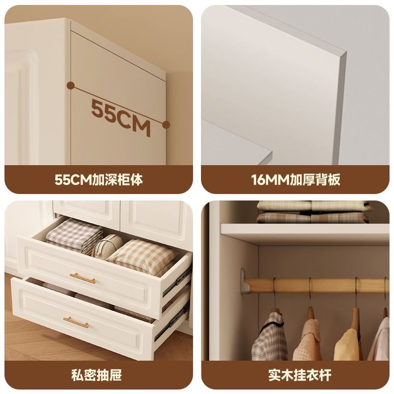 全实木衣柜卧室家用小户型奶油风儿童收纳柜子简易定制欧式大衣橱