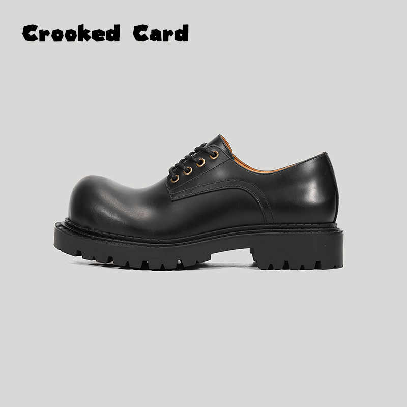 歪牌设计师2024新款小众个性全黑大头德比皮鞋男女情侣同款休闲鞋
