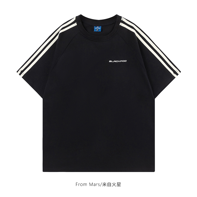 From Mars 求胜心切 日系cityboy三条杠纯色短袖T恤男女宽松休闲