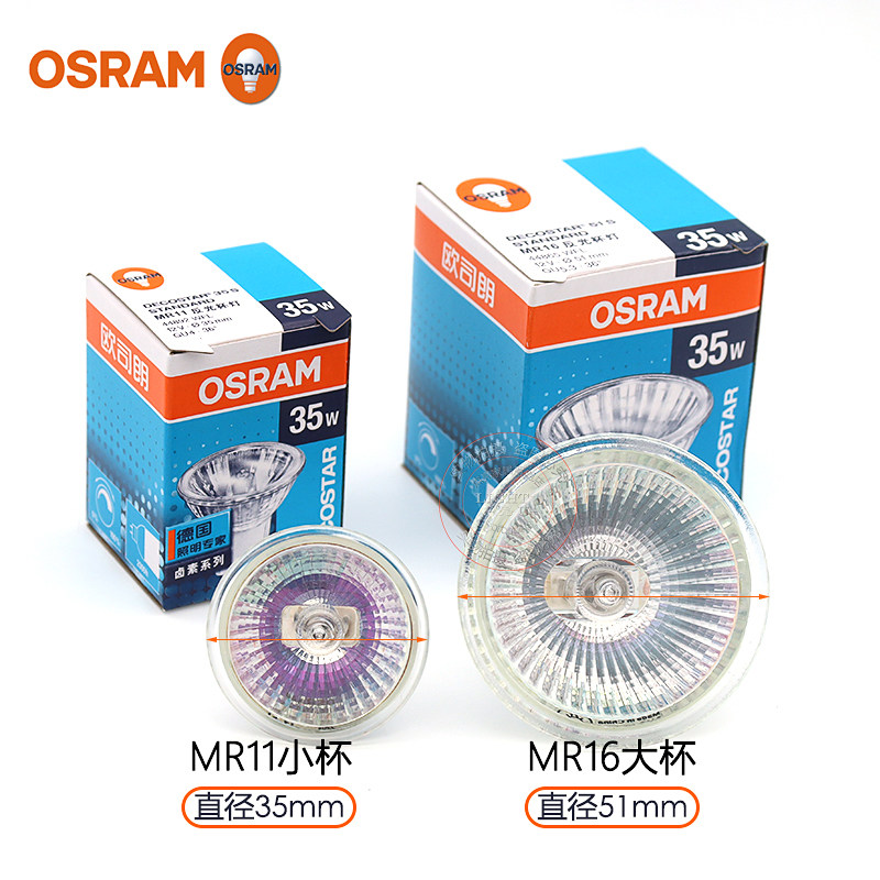 欧司朗LED卤素MR16大杯灯杯灯泡射灯MR11黄光12V/20W35W50W卤钨灯