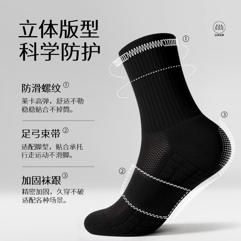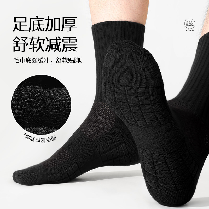 袜子男士春秋冬季纯棉防臭吸汗中筒毛巾底抗菌青少年运动男袜长筒
