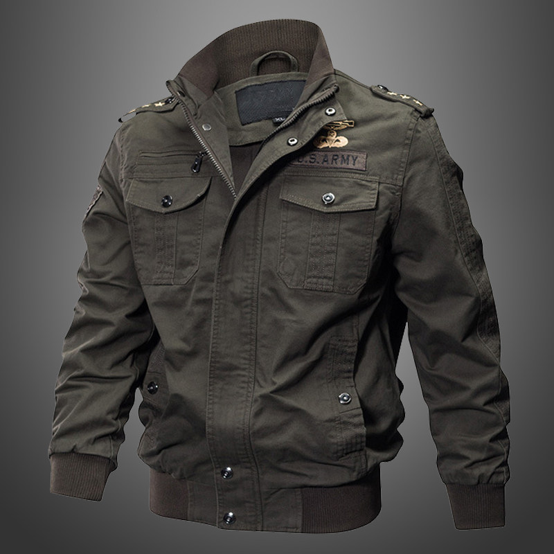 军旅外套2025秋冬新款多袋户外纯棉休闲工装夹克大码加绒立领上衣