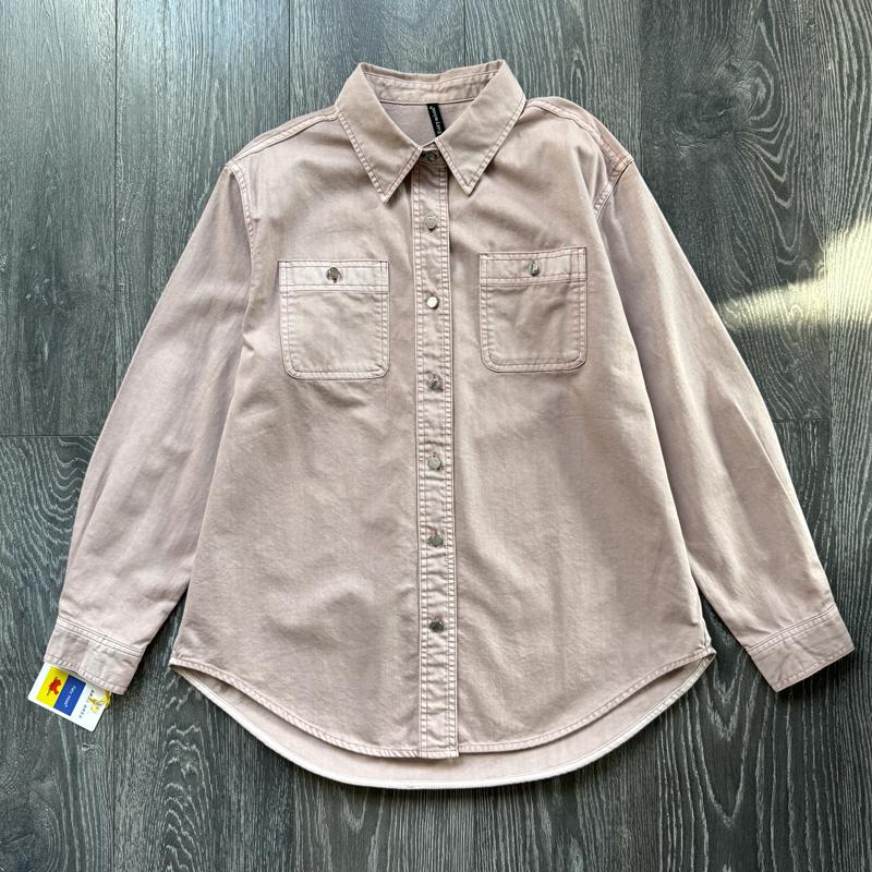 慵懒时尚粉色牛仔衬衫女秋冬百搭气质衬衣宽松高级感外套洋气上衣