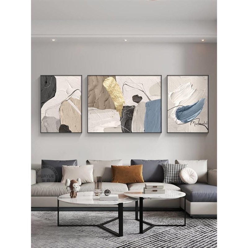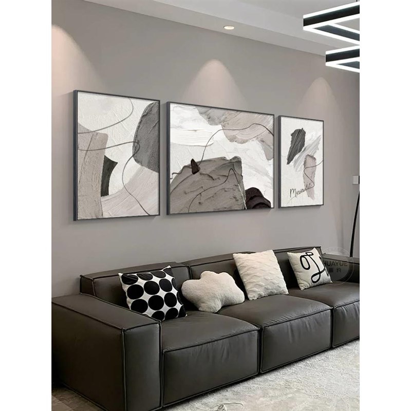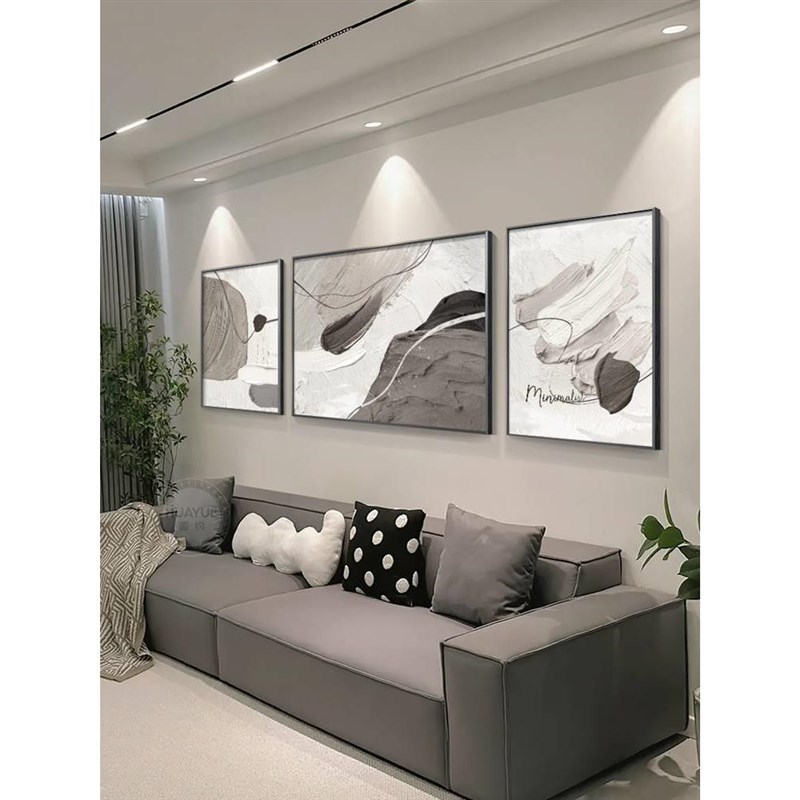 现代简约客厅装饰画黑白抽象沙发背景墙面壁画高级感大气三联挂画