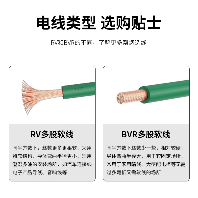 50 100米国标RV多股铜线软线端子电线0.3 0.75 2.5平方电子线单芯