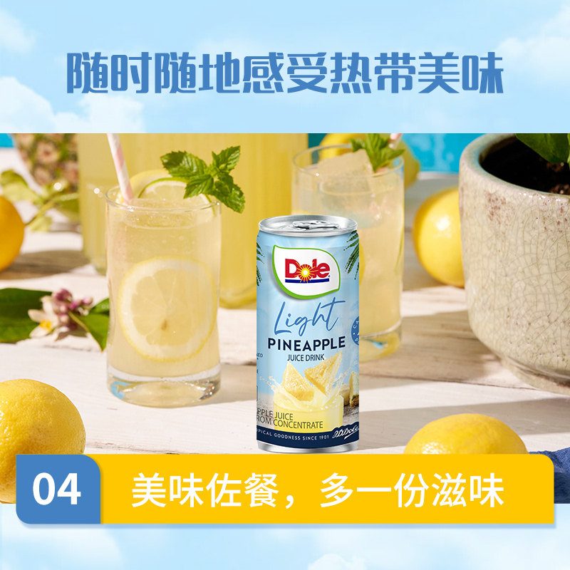 dole都乐菲律宾进口轻甜菠萝汁177ml*6罐/提 0脂肪果汁饮料饮品