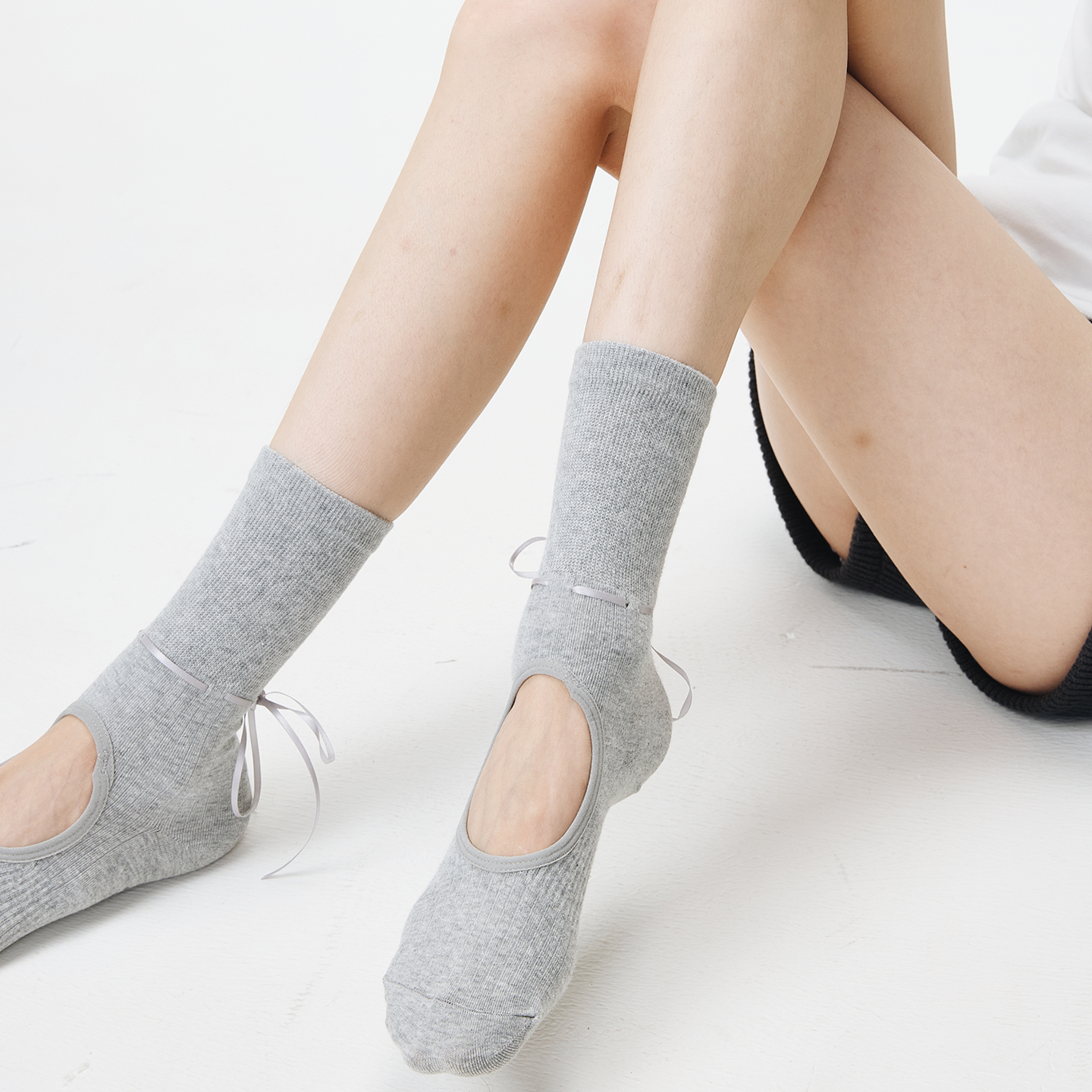 瑜伽袜子女专业运动健身舞蹈普拉提露背防滑地板袜蝴蝶结系带中筒