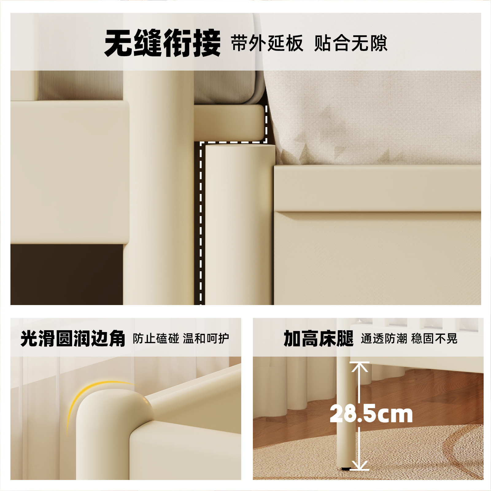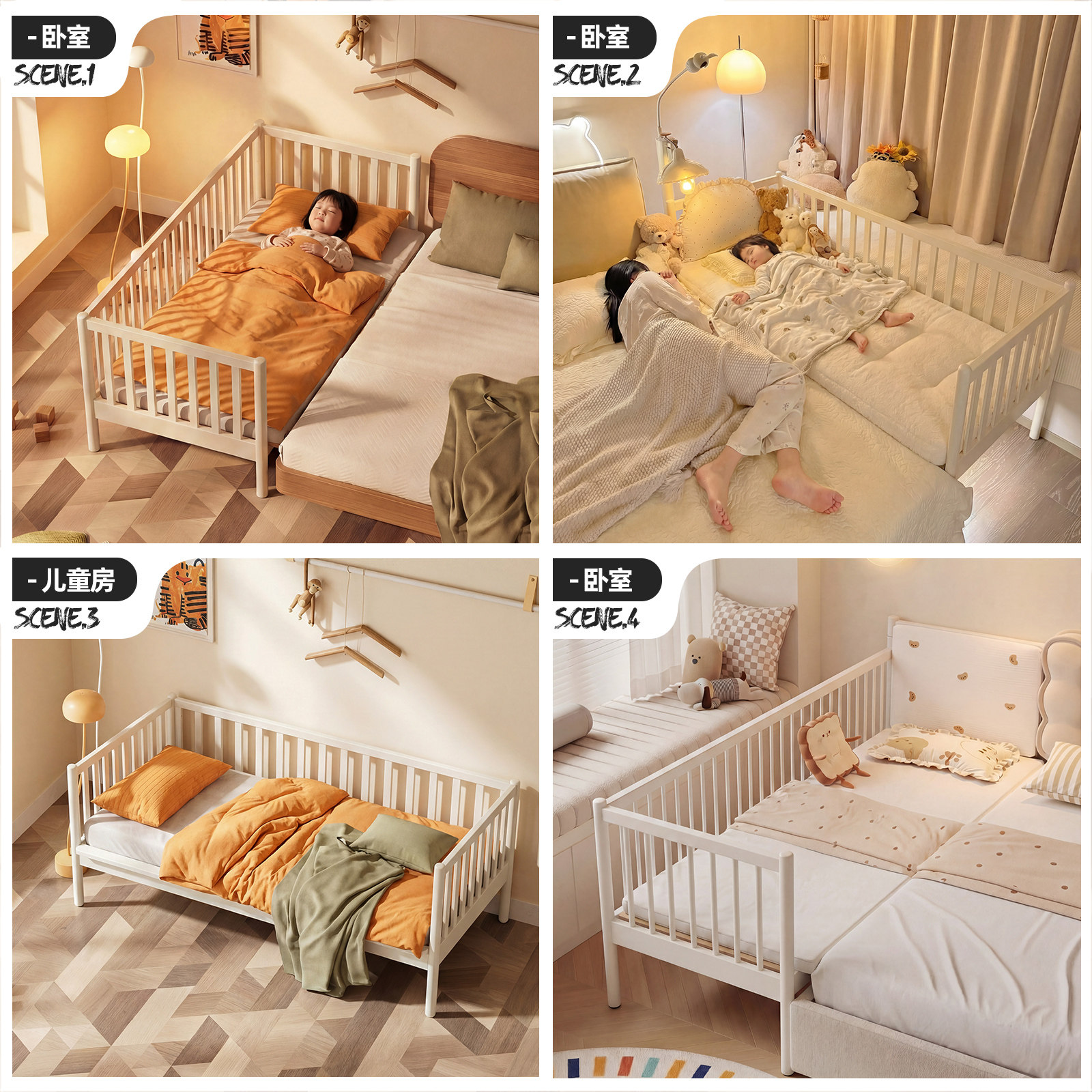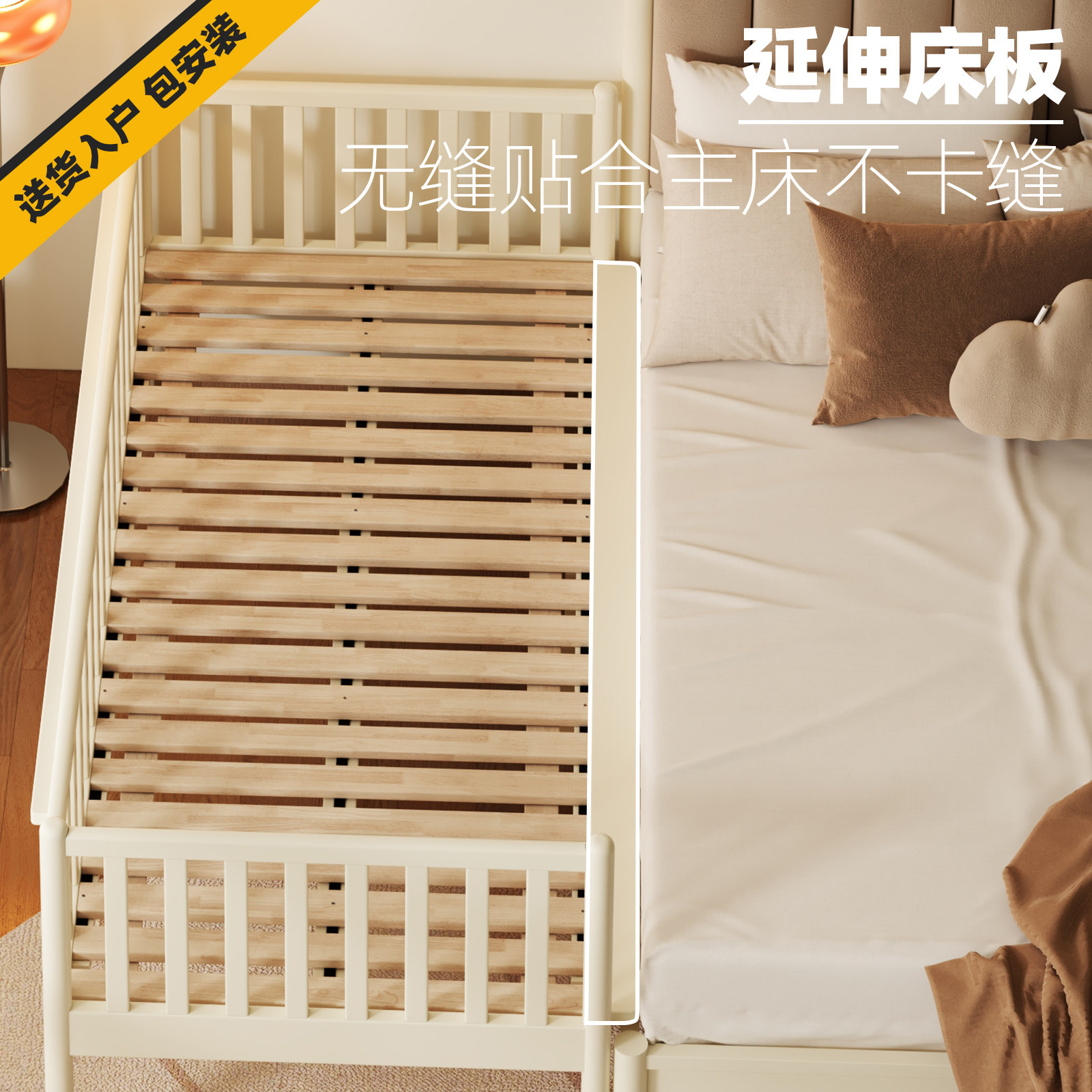 实木儿童拼接床带护栏缝隙款