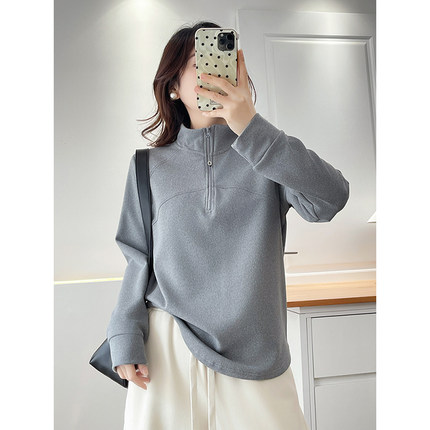 翠袖大码女装半拉链立领加绒卫衣女秋冬季长袖T恤打底衫宽松上衣